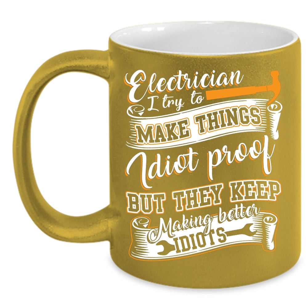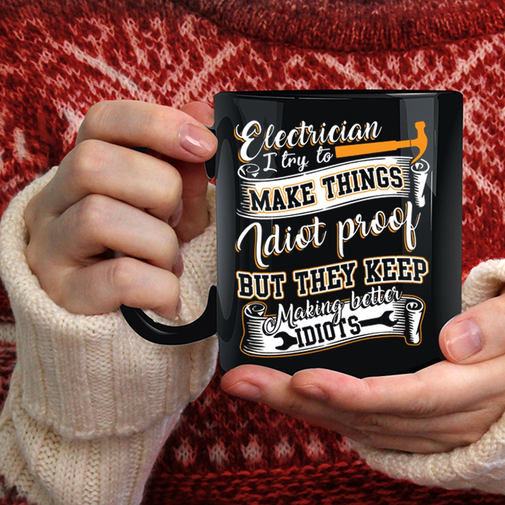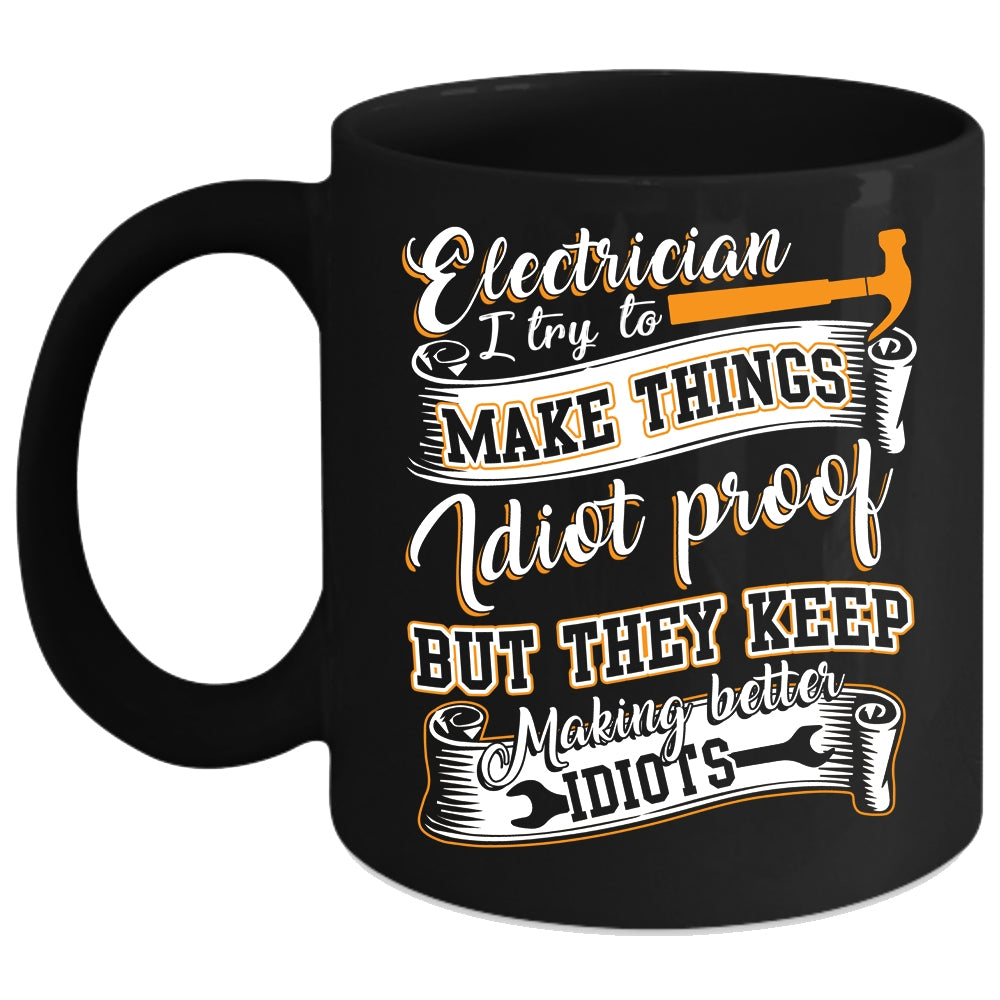 Electrician Coffee Mug, I Try To Make Things Idiot Proof Coffee Cup