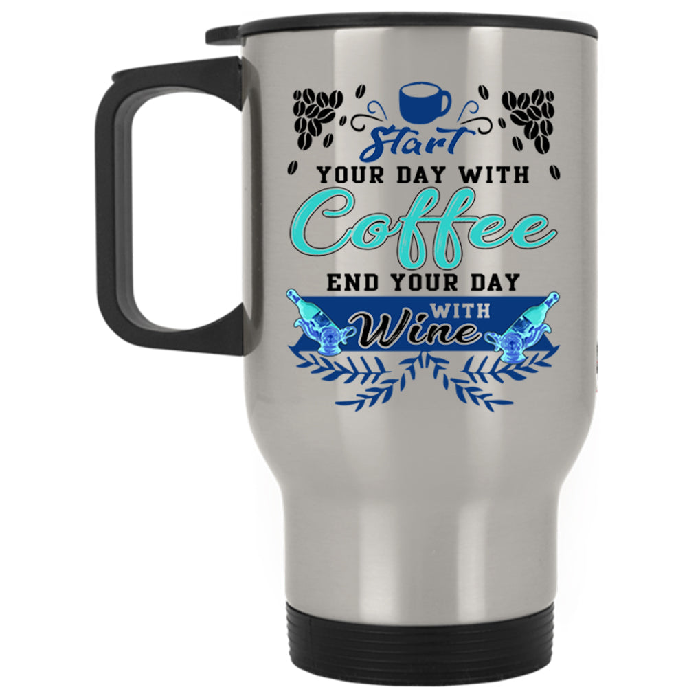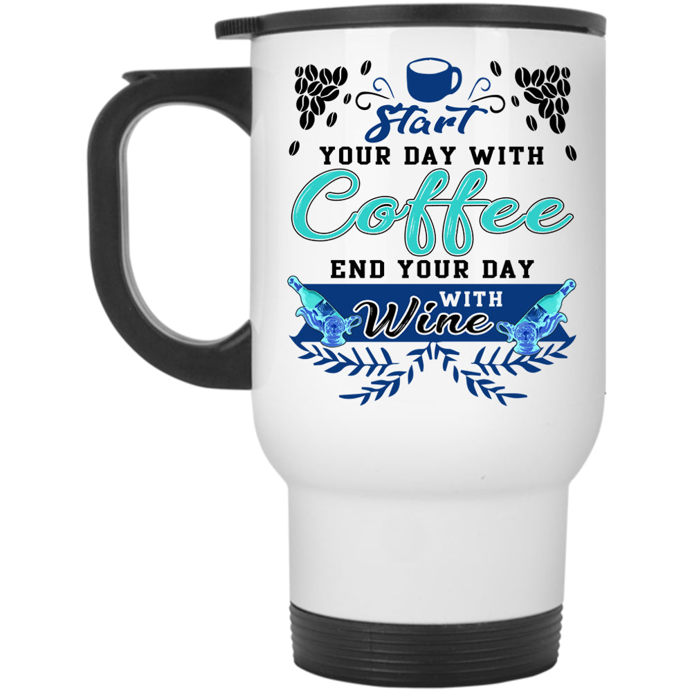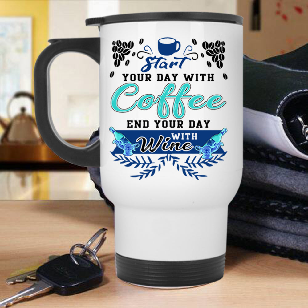 End Your Day With Wine Travel Mug, Start Your Day With Coffee Mug