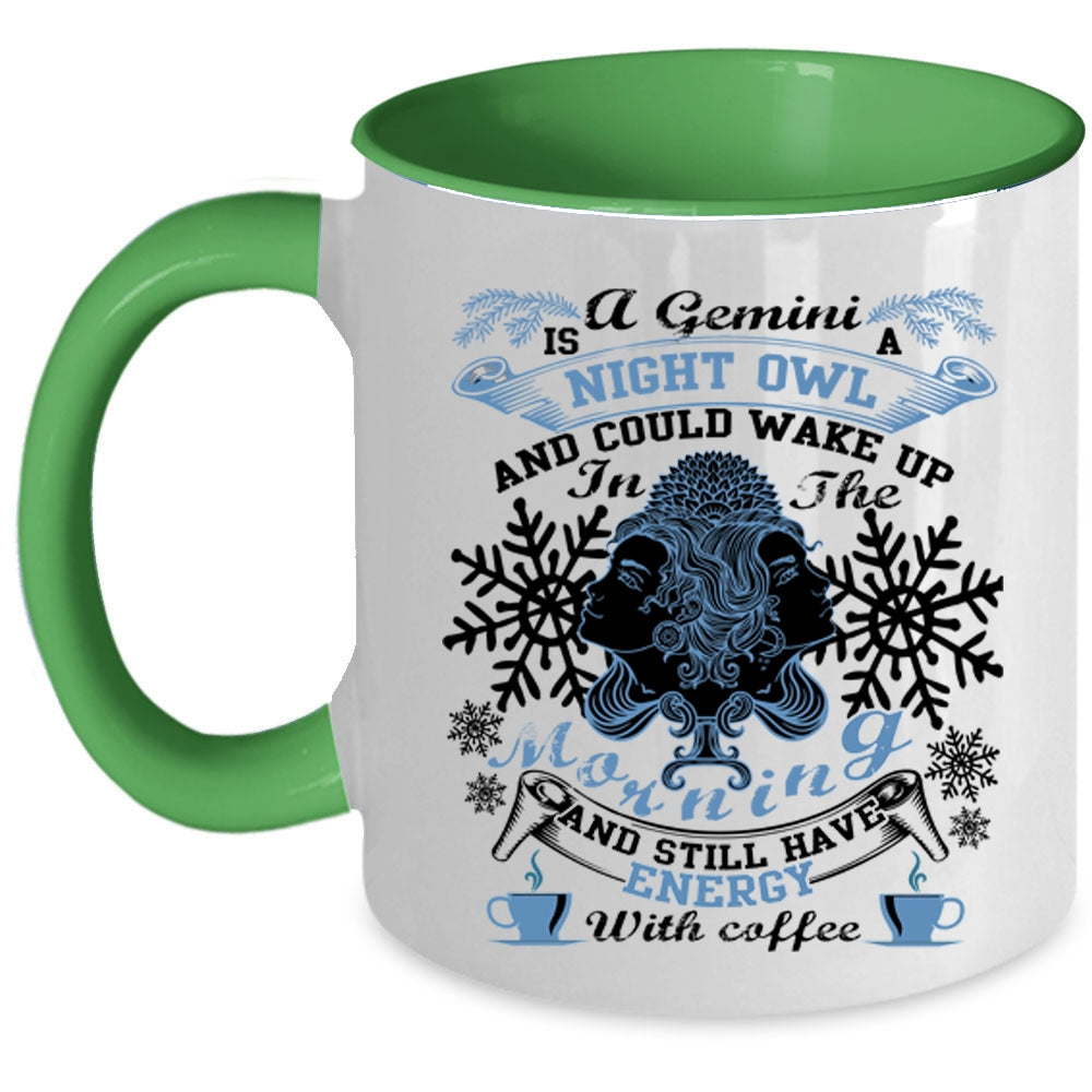 Energy With Coffee Coffee Mug, A Gemini Is A Night Owl Accent Mug