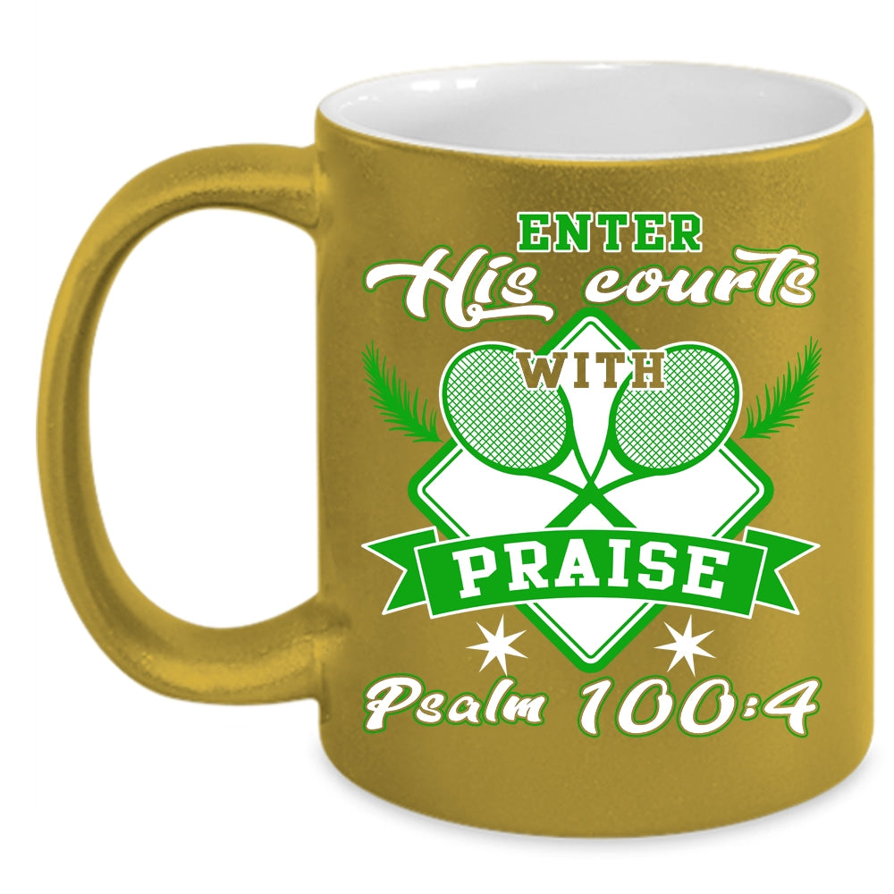 Enter His Courts With Praise Coffee Mug, Funny Tennis Coffee Cup