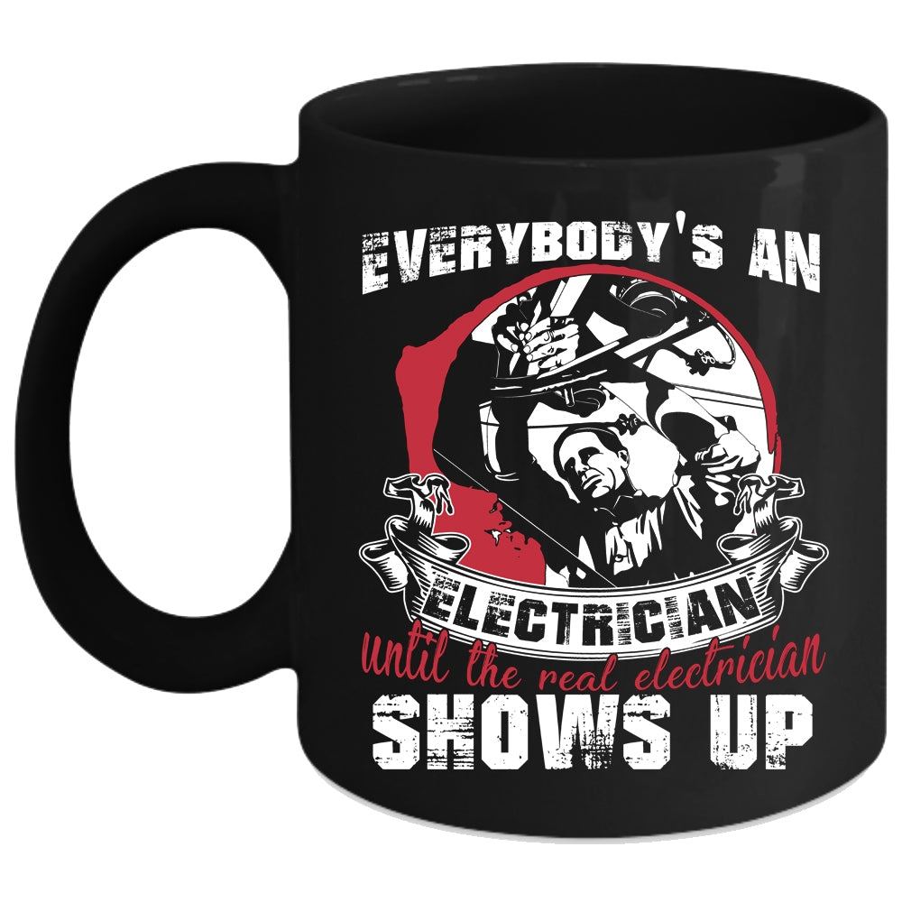 Everybody's An Electrician Coffee Mug, Real Electrician Shows Up Coffee Cup