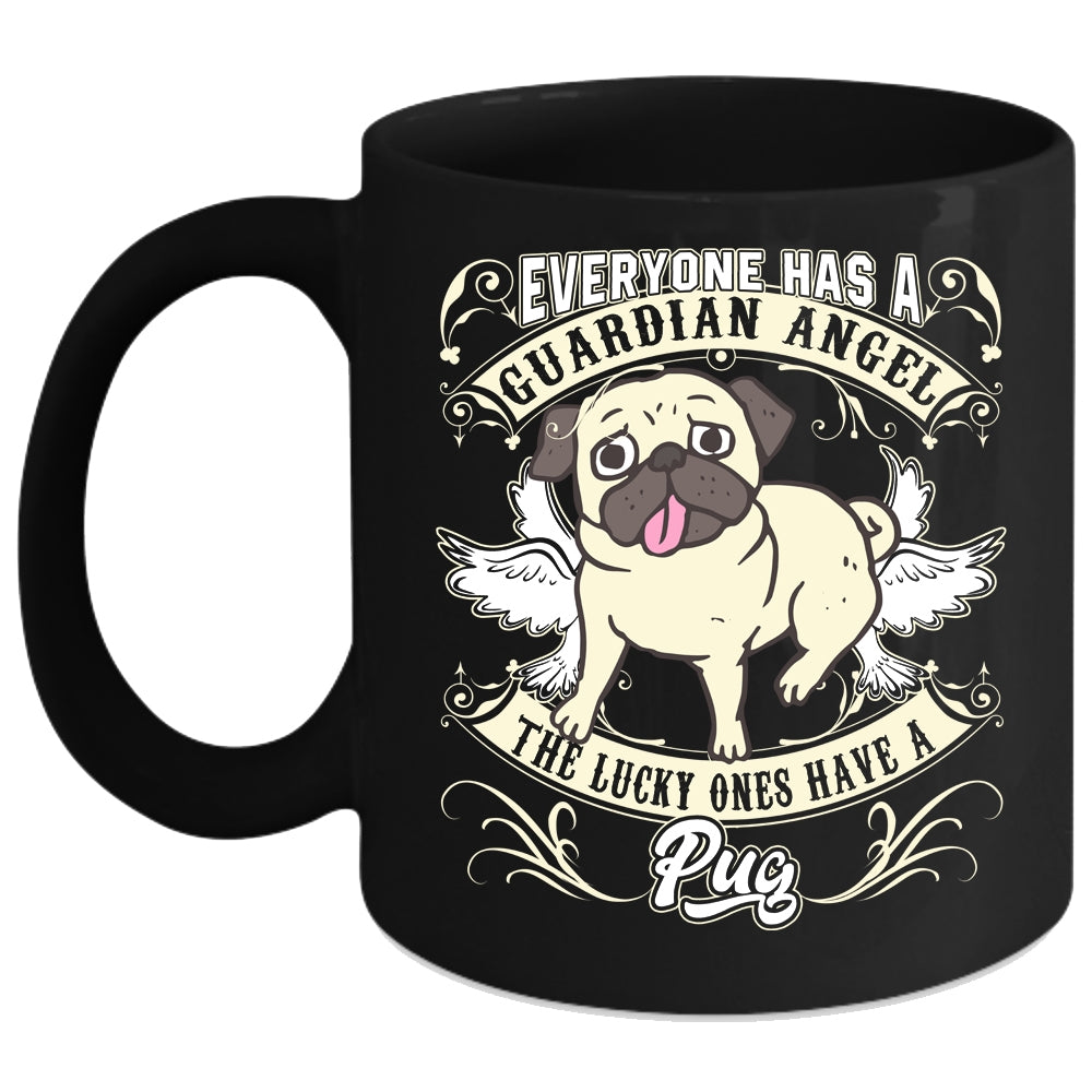 Everyone Has A Guardian Angel Coffee Mug, The Lucky Ones Have A Pug Coffee Cup