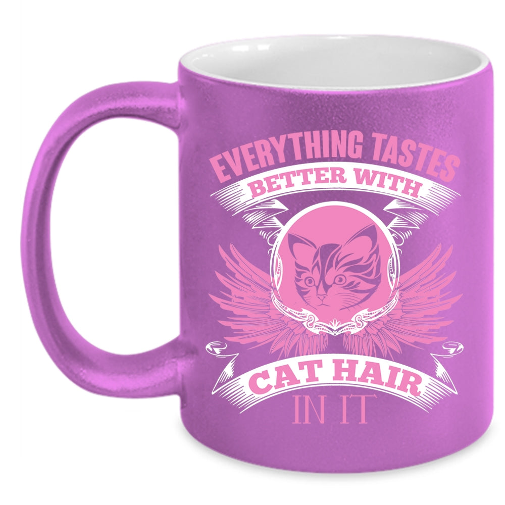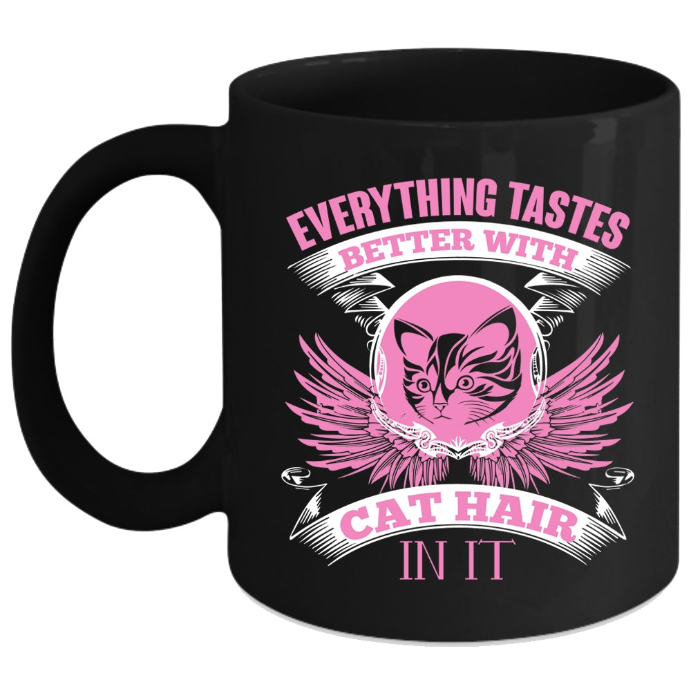 Everything Tastes Better With Cat Hair Coffee Mug, Cool Cat Coffee Cup