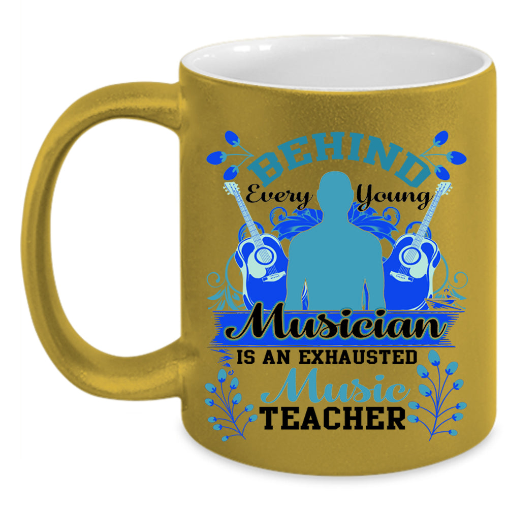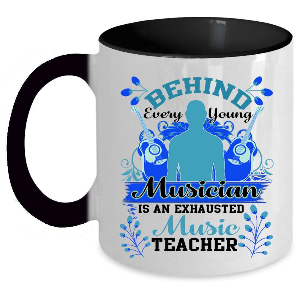 Exhausted Music Teacher Coffee Mug, Behind Every Young Musician Accent Mug