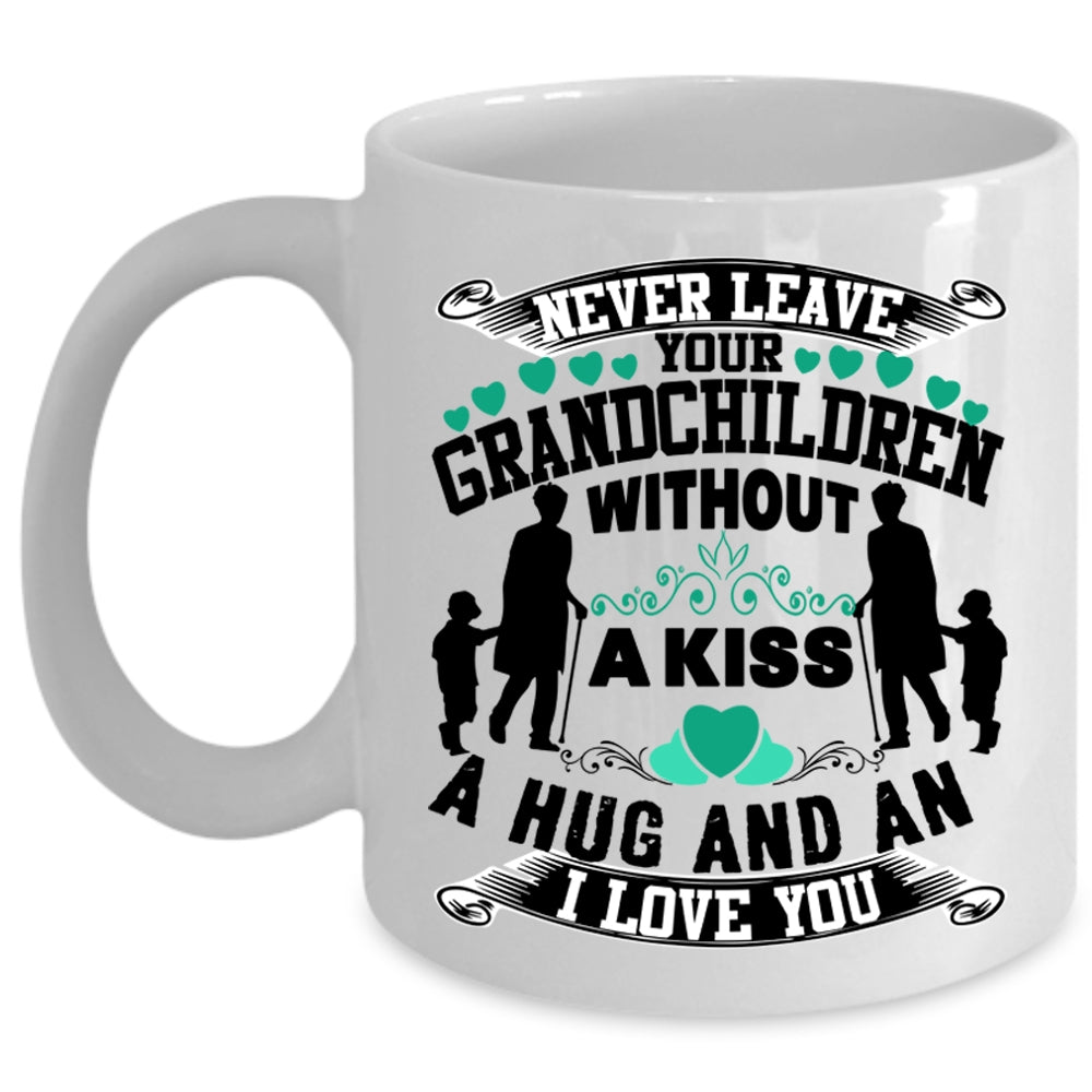 Family Coffee Mug, Never Leave Your Grandchildren Without A Kiss Cup