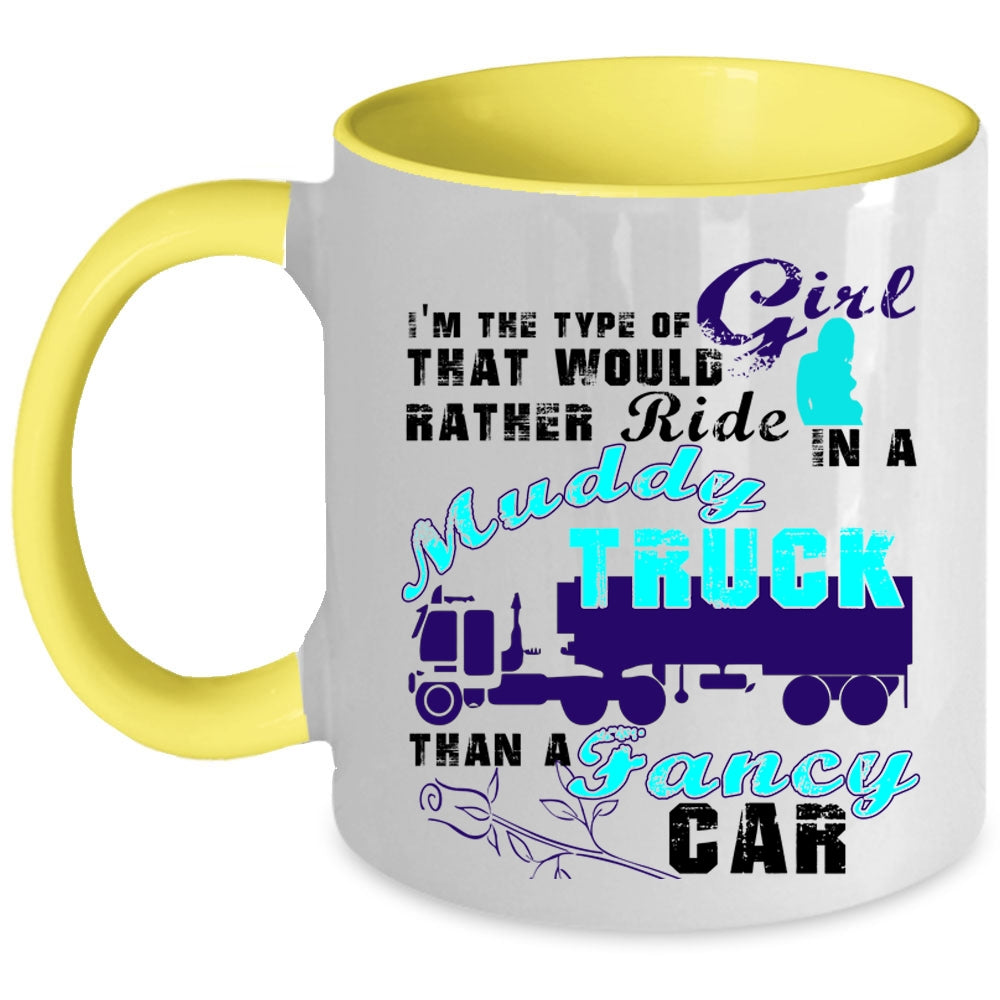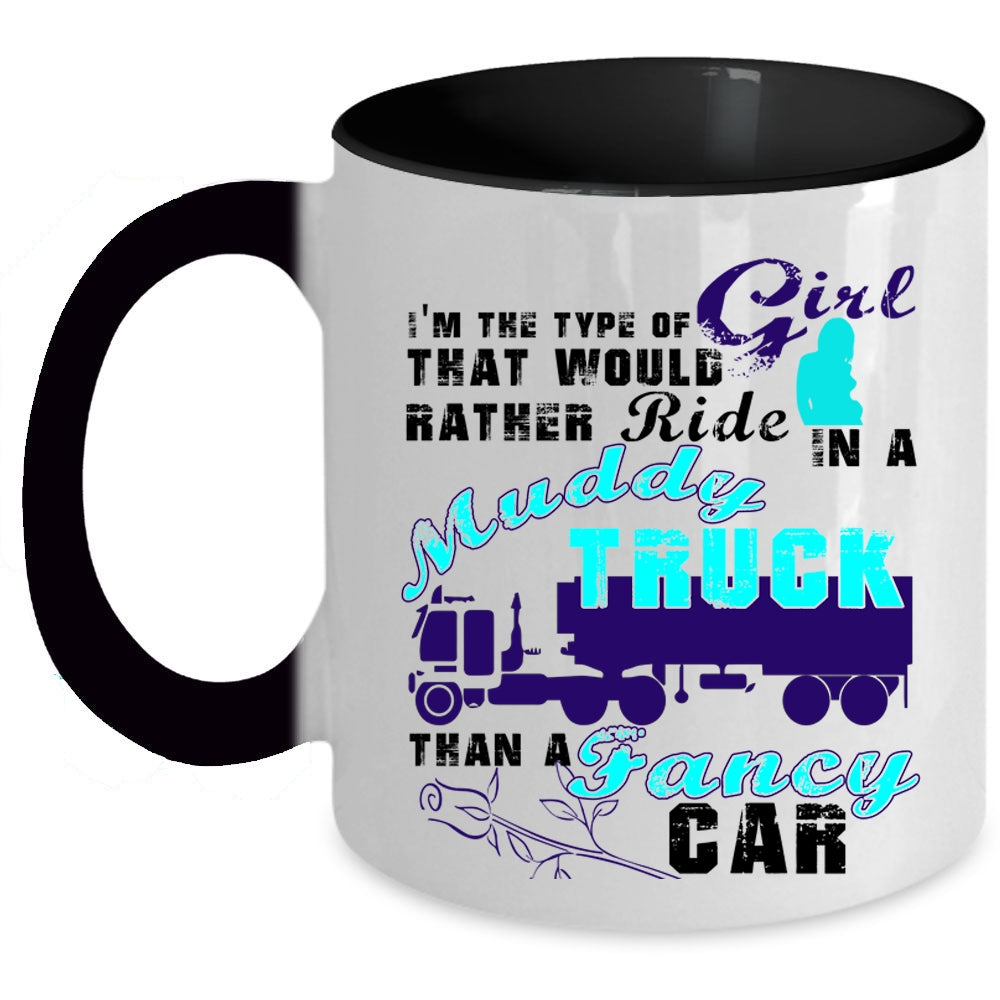 Fancy Car Coffee Mug, Ride In A Muddy Truck Accent Mug