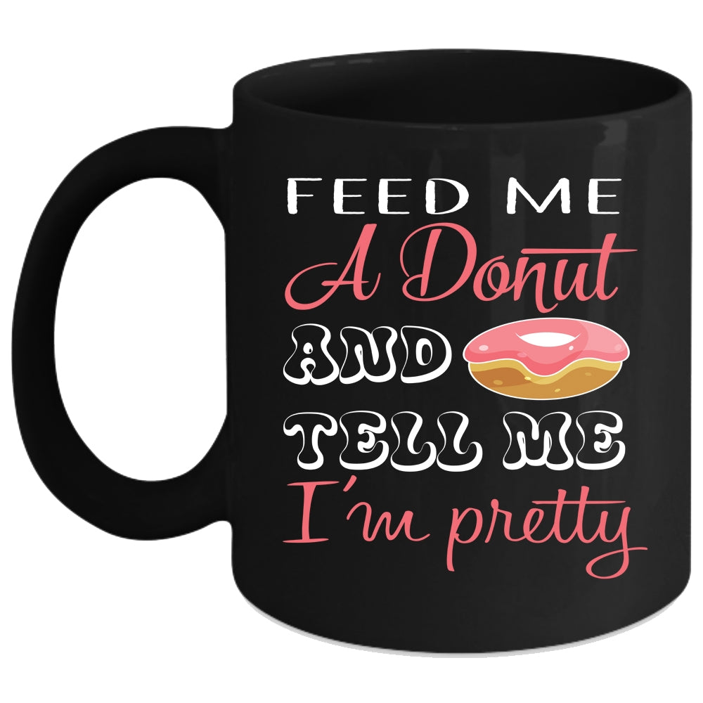 Feed Me A Donut And Tell Me I'm Pretty Coffee Mug, Cute Donut Coffee Cup