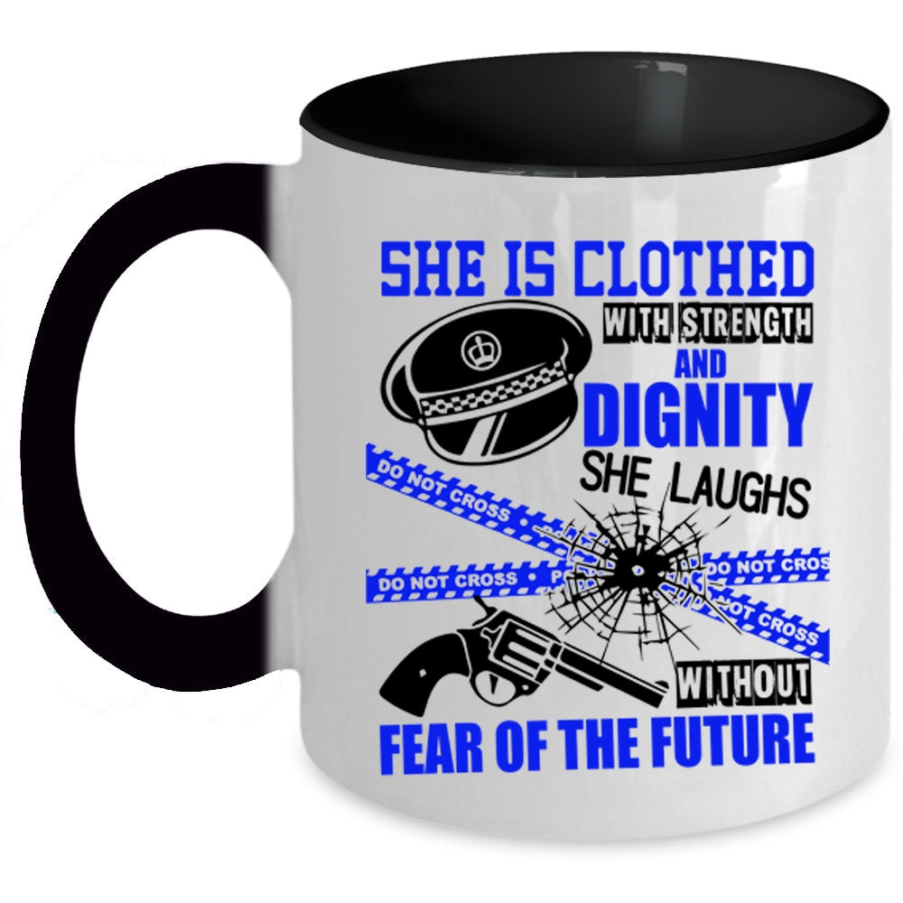 Female Policeman Coffee Mug, She Is Clothed With Strength Accent Mug