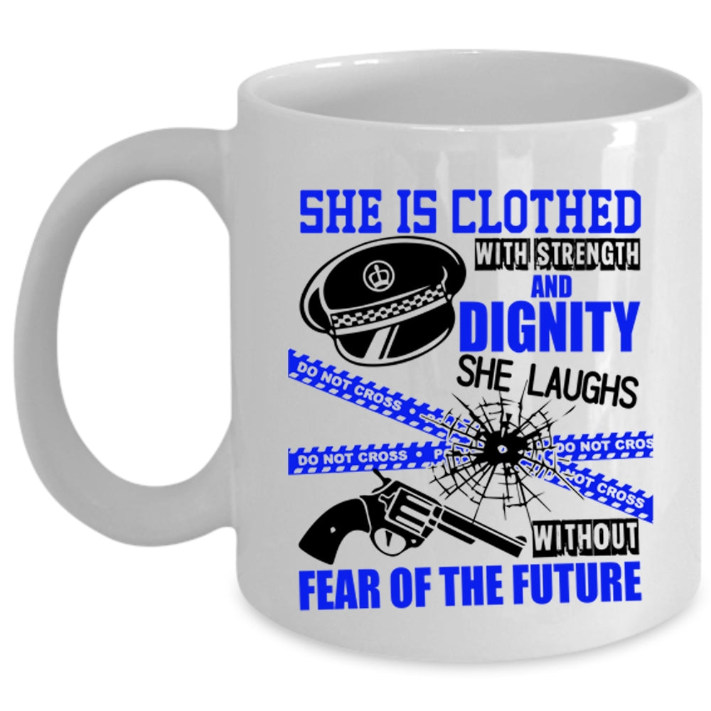 Female Policeman Coffee Mug, She Is Clothed With Strength Cup