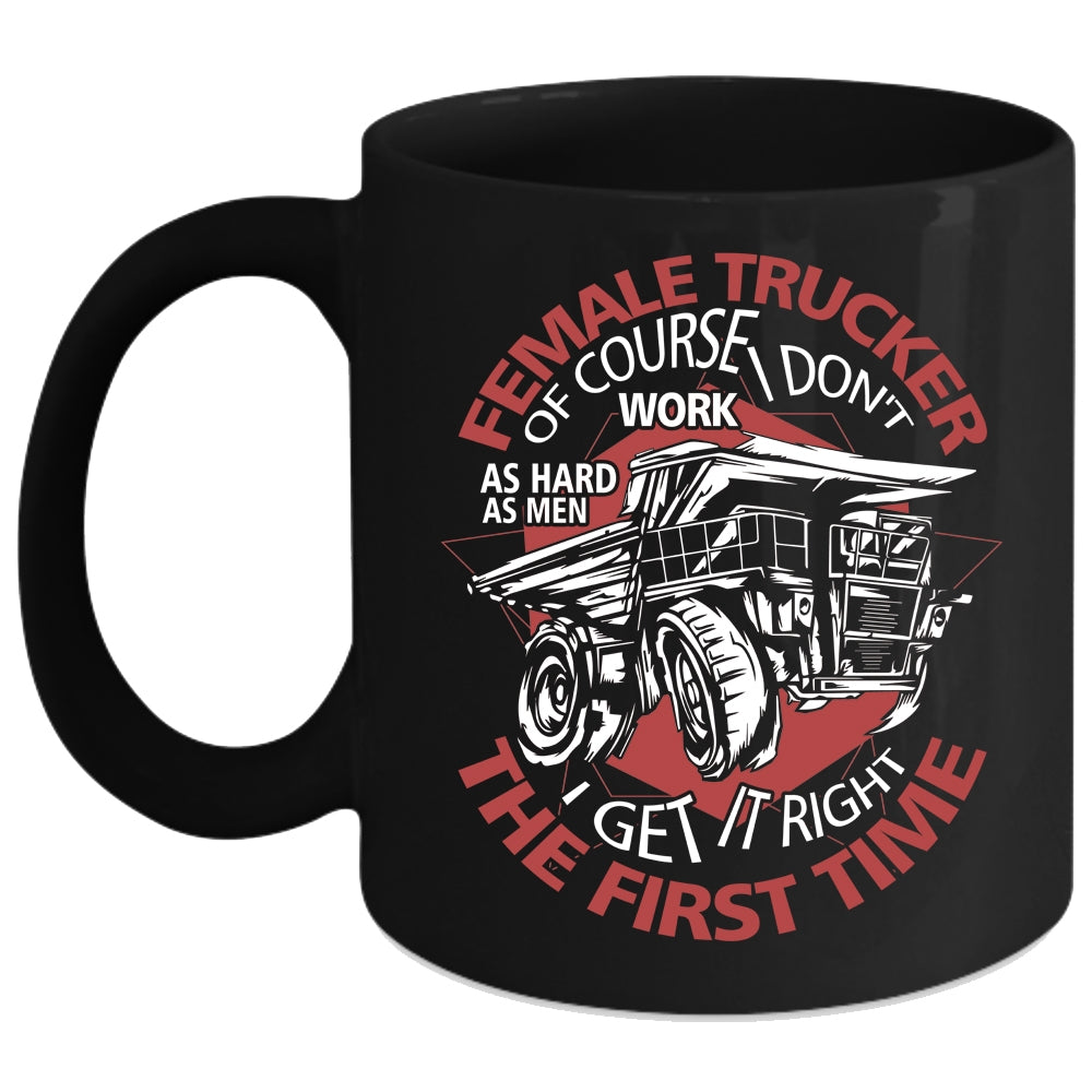 Female Trucker Coffee Mug, Cool Gift For Mom Coffee Cup