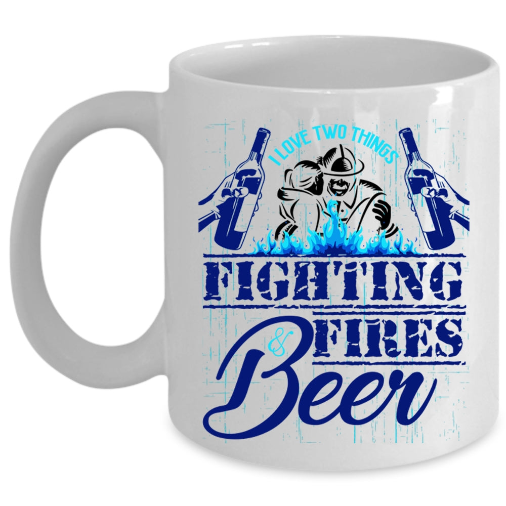 Fighting Fires And Beer Coffee Mug, I Love Two Things Cup