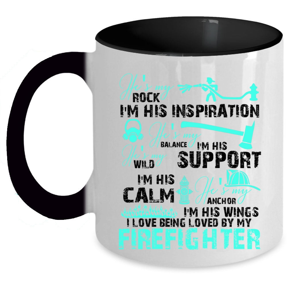 Firefighter's Girlfriend Coffee Mug, I Love Being Loved By My Firefighter Accent Mug