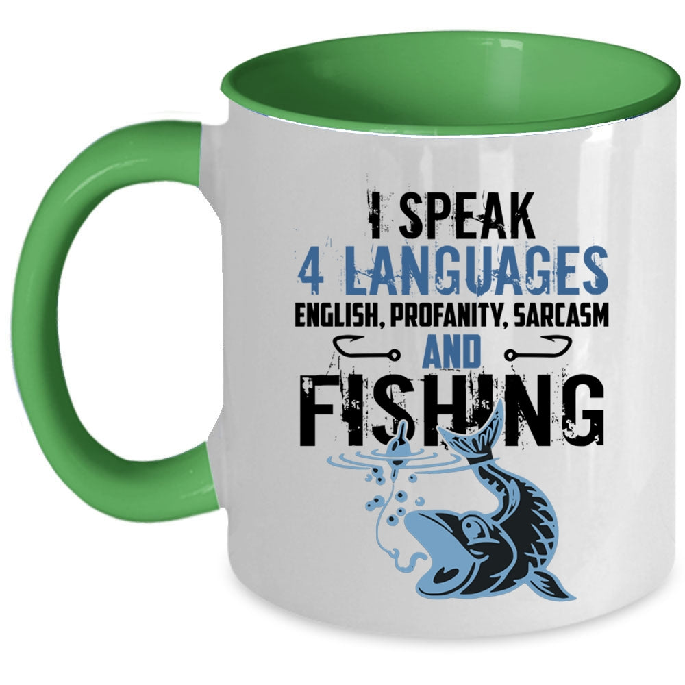 Fishing Coffee Mug, I Speak 4 Languages Accent Mug