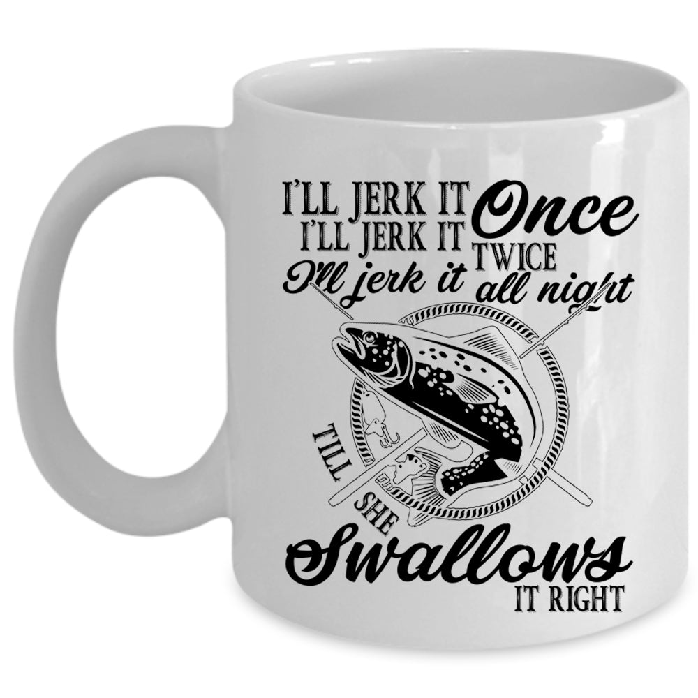 Fishing Coffee Mug, I'll Jerk It Once I'll Jerk It Twice Cup