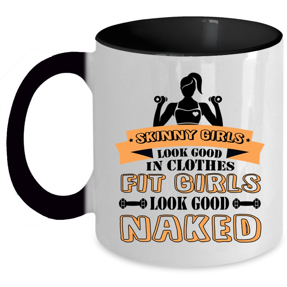 Fit Girls Look Good Naked Coffee Mug, Skinny Girls Look Good In Clothes Accent Mug