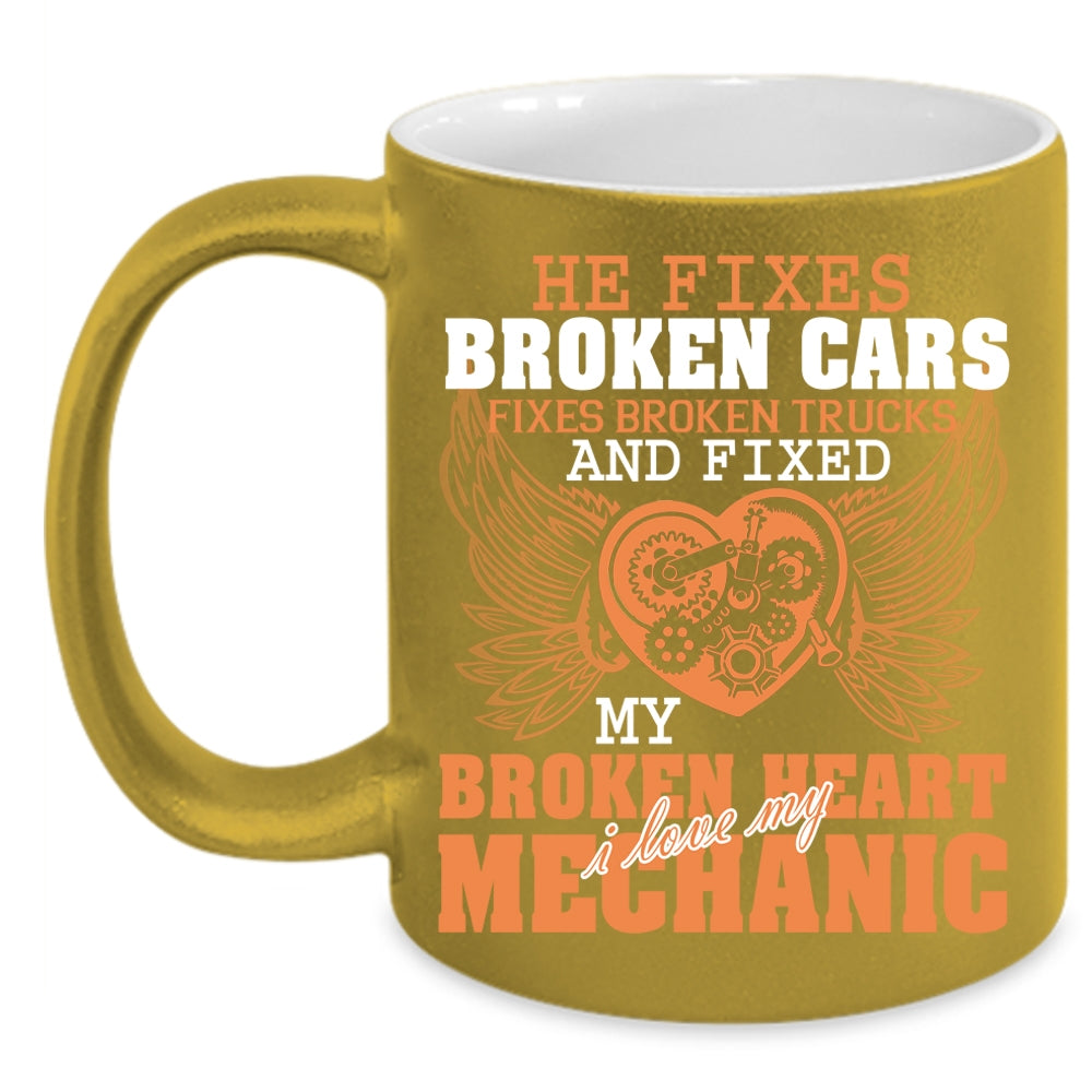 Fixed My Broken Heart Coffee Mug, I Love My Mechanic Coffee Cup