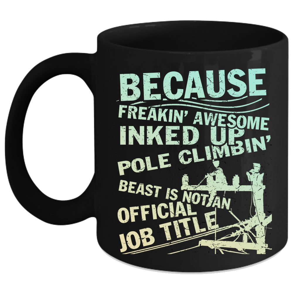 Freaking Awesome Pole Climbing Coffee Mug, Funny Lineman Coffee Cup