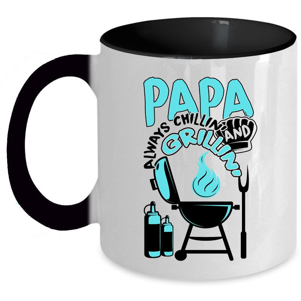 Funny Barbecue Coffee Mug, Papa Always Chilling Grilling Accent Mug