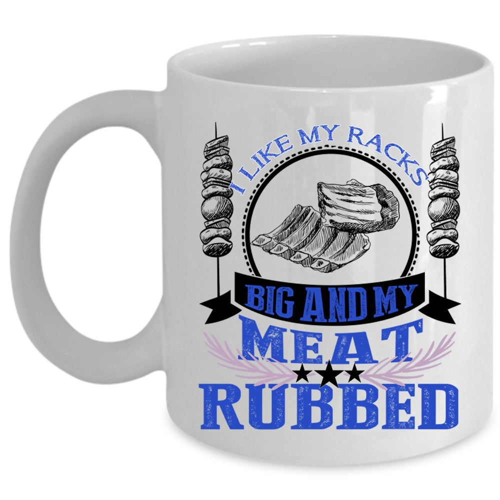 Funny BBQ Coffee Mug, I Like My Racks Big And My Meat Rubbed Cup