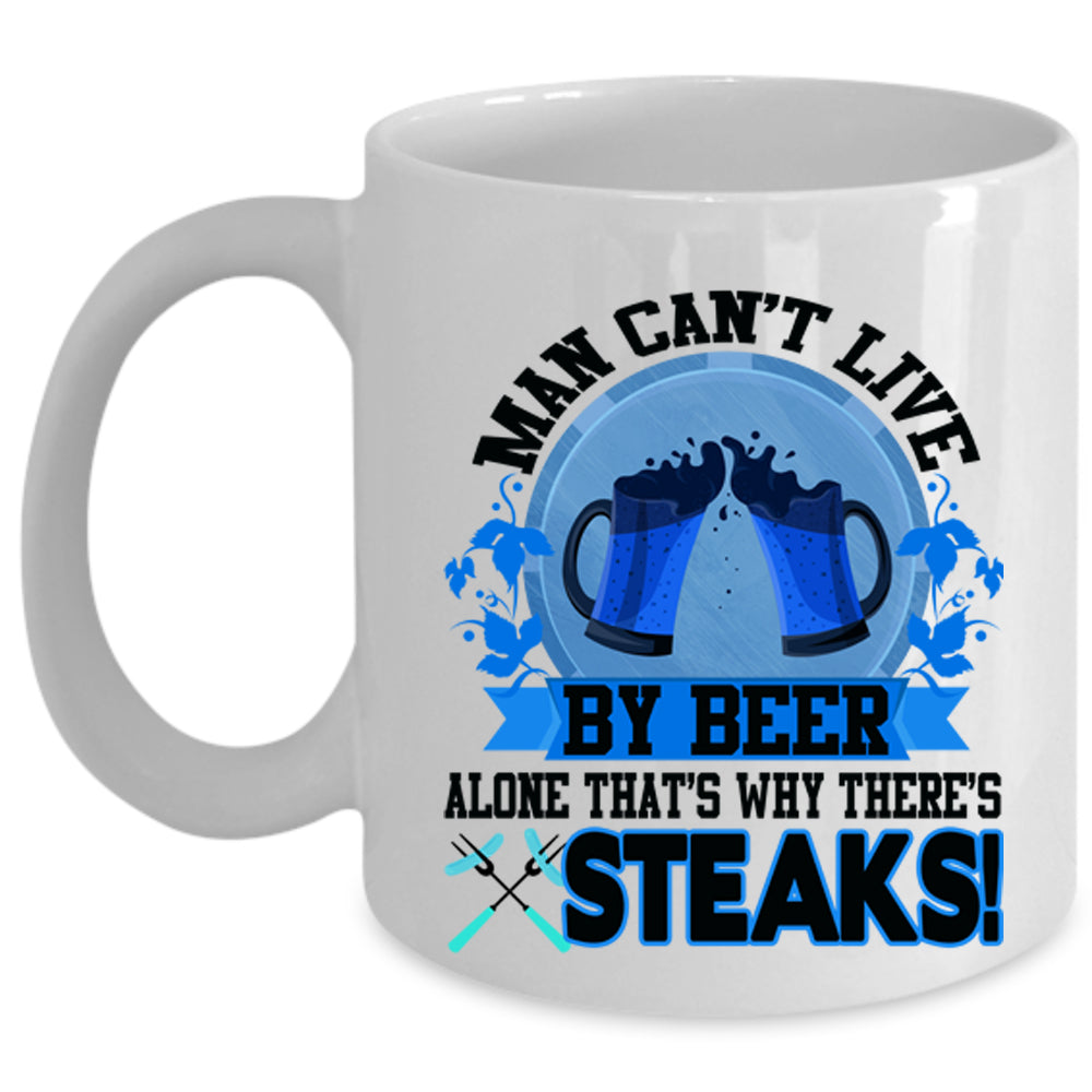 Funny Beer Drinker Coffee Mug, Man Can't Live By Beer Alone Cup