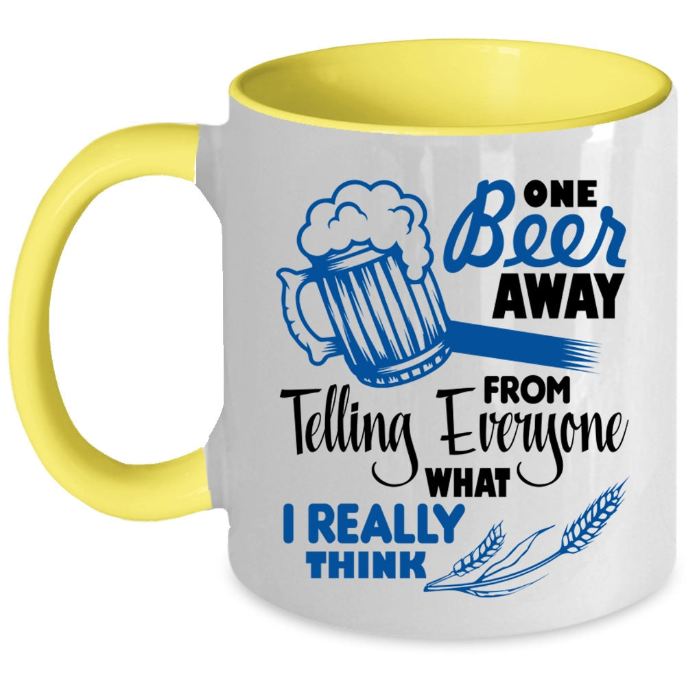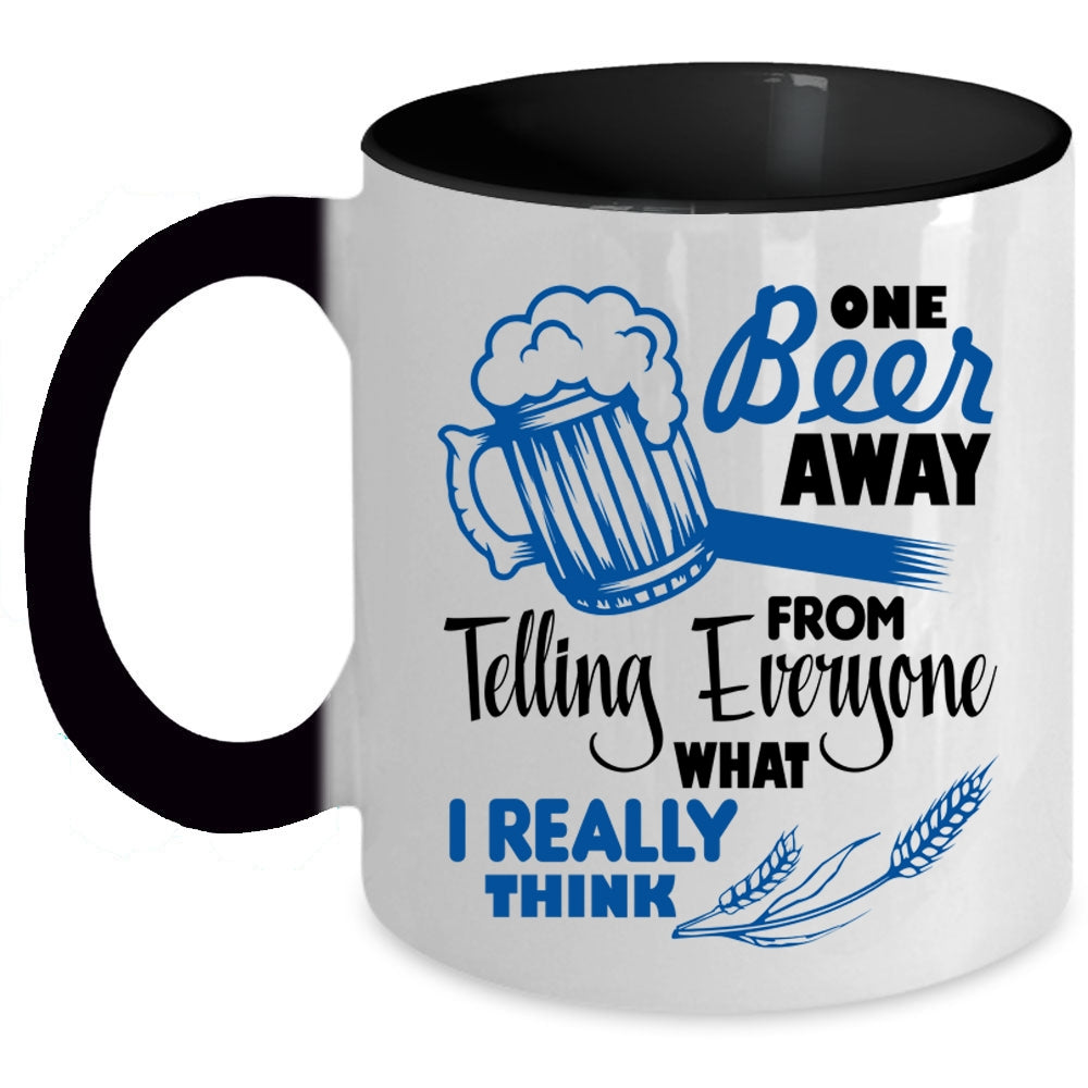 Funny Beer Drinker Coffee Mug, One Beer Away From Telling Everyone Accent Mug