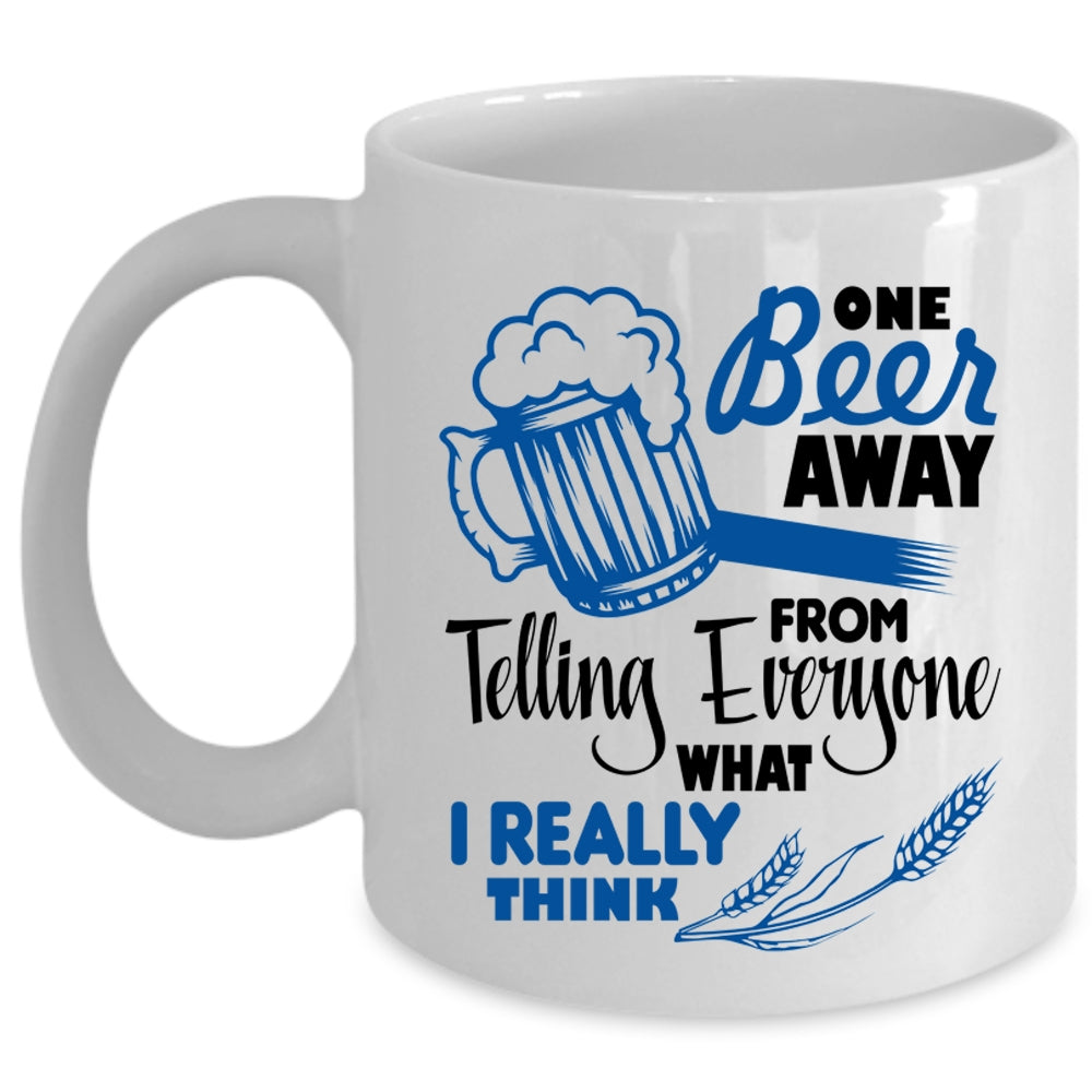 Funny Beer Drinker Coffee Mug, One Beer Away From Telling Everyone Cup