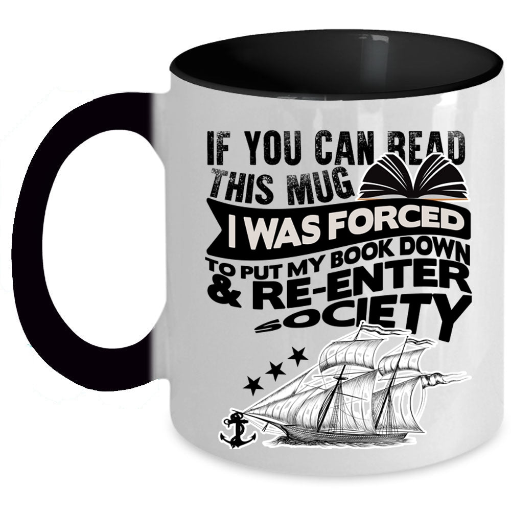 Funny Books Coffee Mug, I Was Forced To Put My Book Down Accent Mug