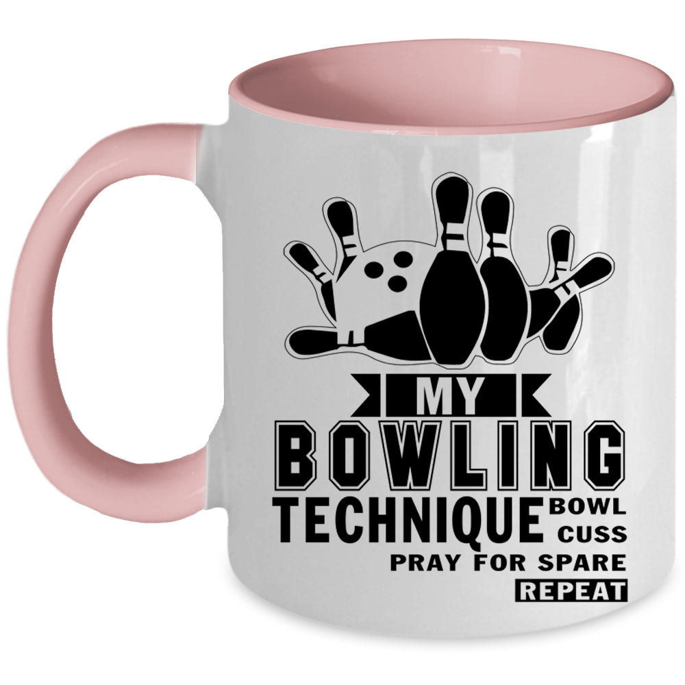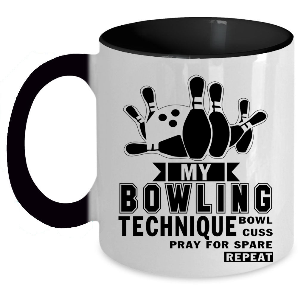 Funny Bowling Coffee Mug, My Bowling Technique Accent Mug