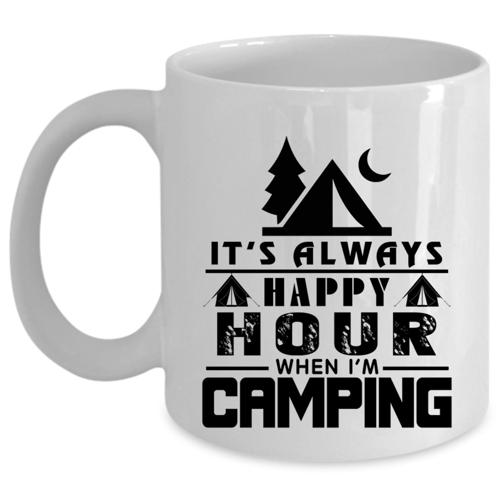 Funny Camping Coffee Mug, It's Always Happy Hour When I'm Camping Cup