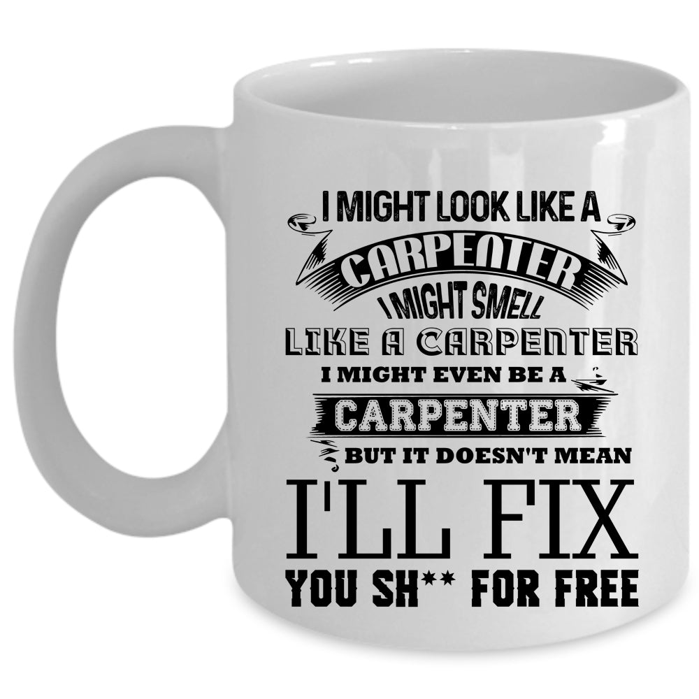 Funny Carpenter Coffee Mug, I Might Look Like A Carpenter Cup