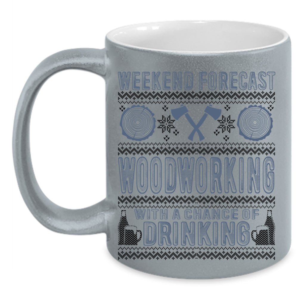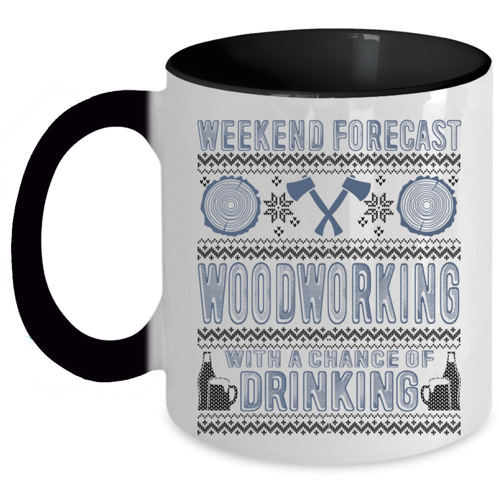Funny Carpenter Coffee Mug, Weekend Forecast Woodworking Accent Mug