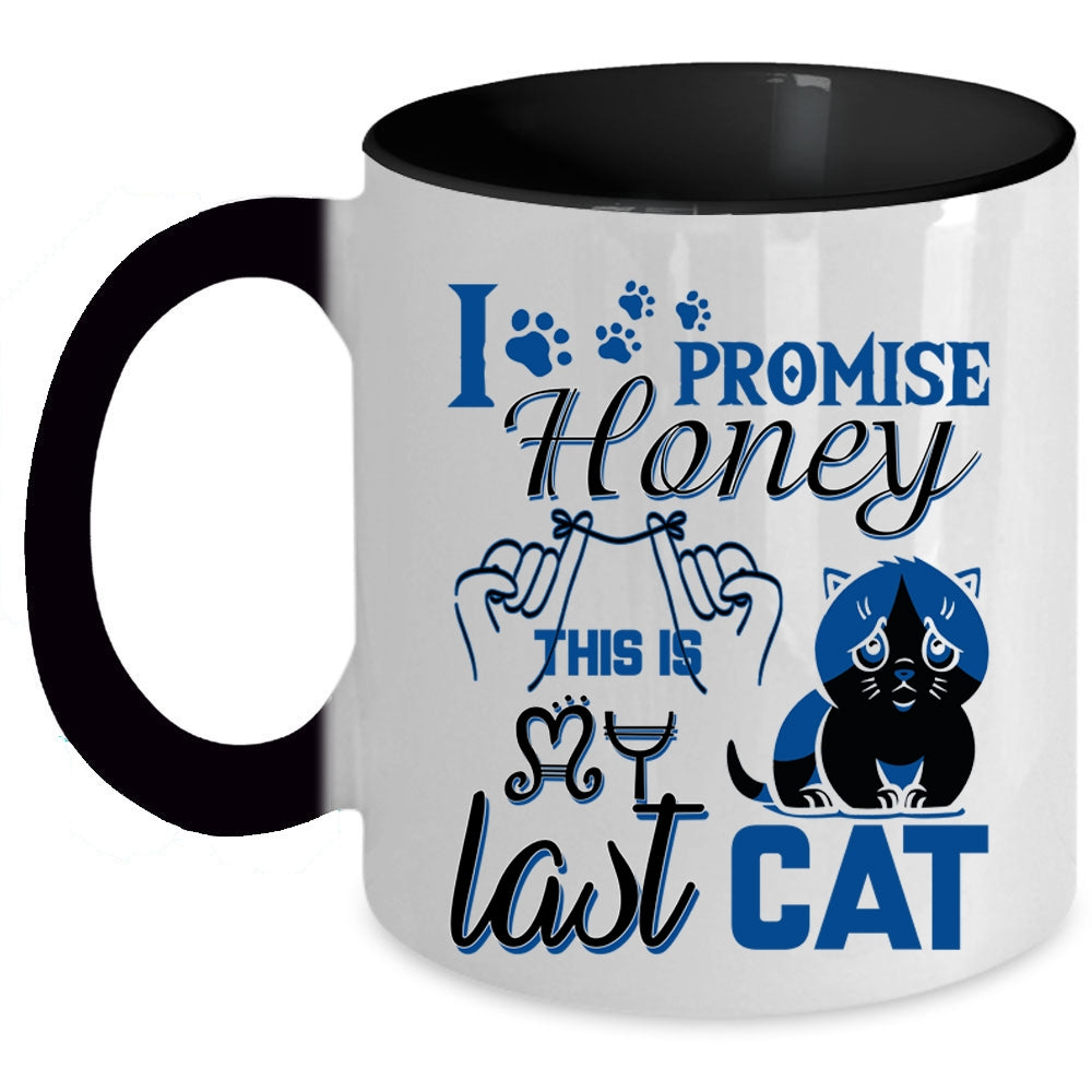 Funny Cat Lover Coffee Mug, I Promise Honey This Is Last Cat Accent Mug