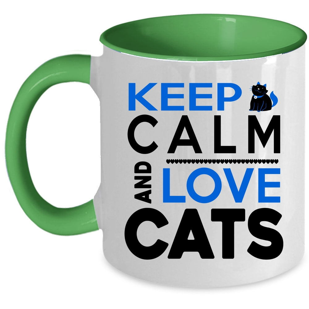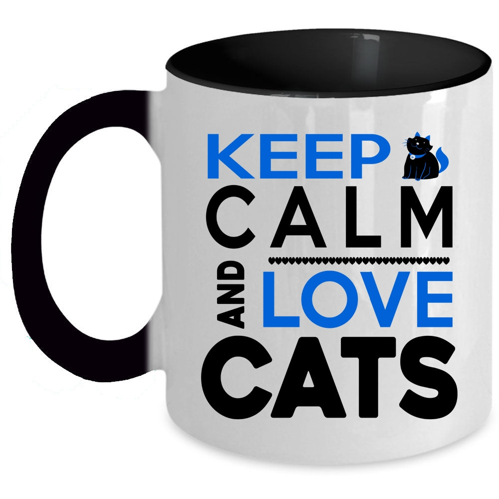 Funny Cat Lovers Coffee Mug, Keep Calm And Love Cats Accent Mug