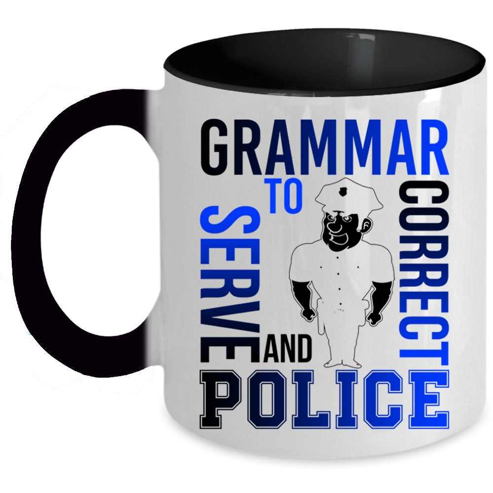Funny Coffee Mug, Grammar Police To Serve And Correct Accent Mug
