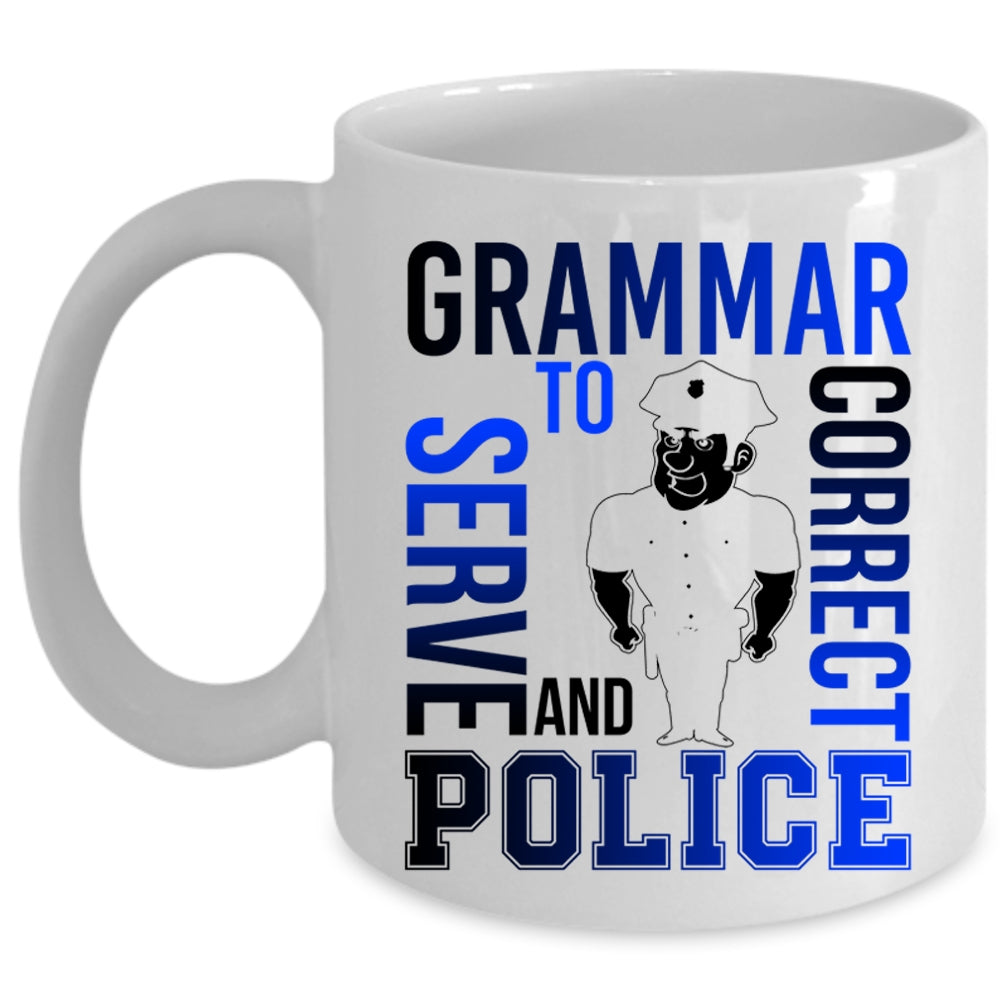 Funny Coffee Mug, Grammar Police To Serve And Correct Cup
