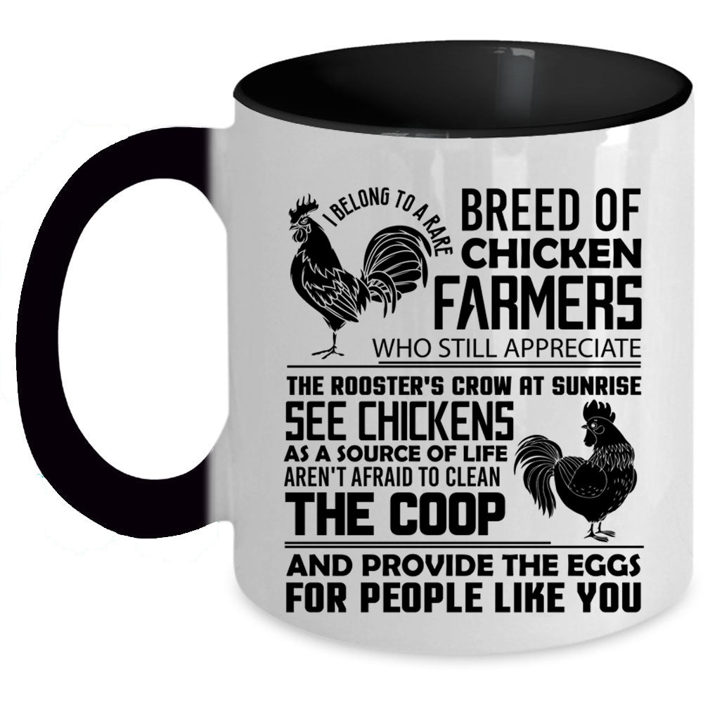 Funny Coffee Mug, I Belong To A Rare Breed Of Chicken Farmers Accent Mug