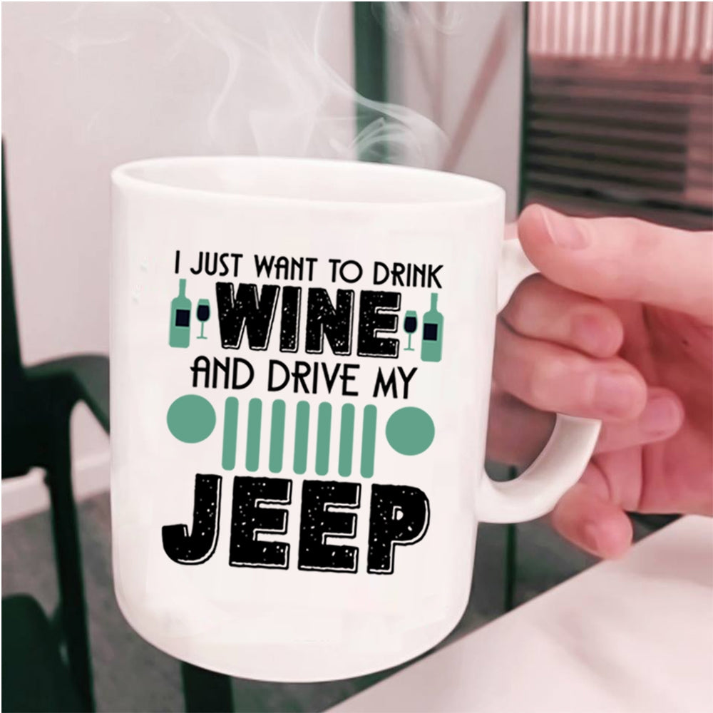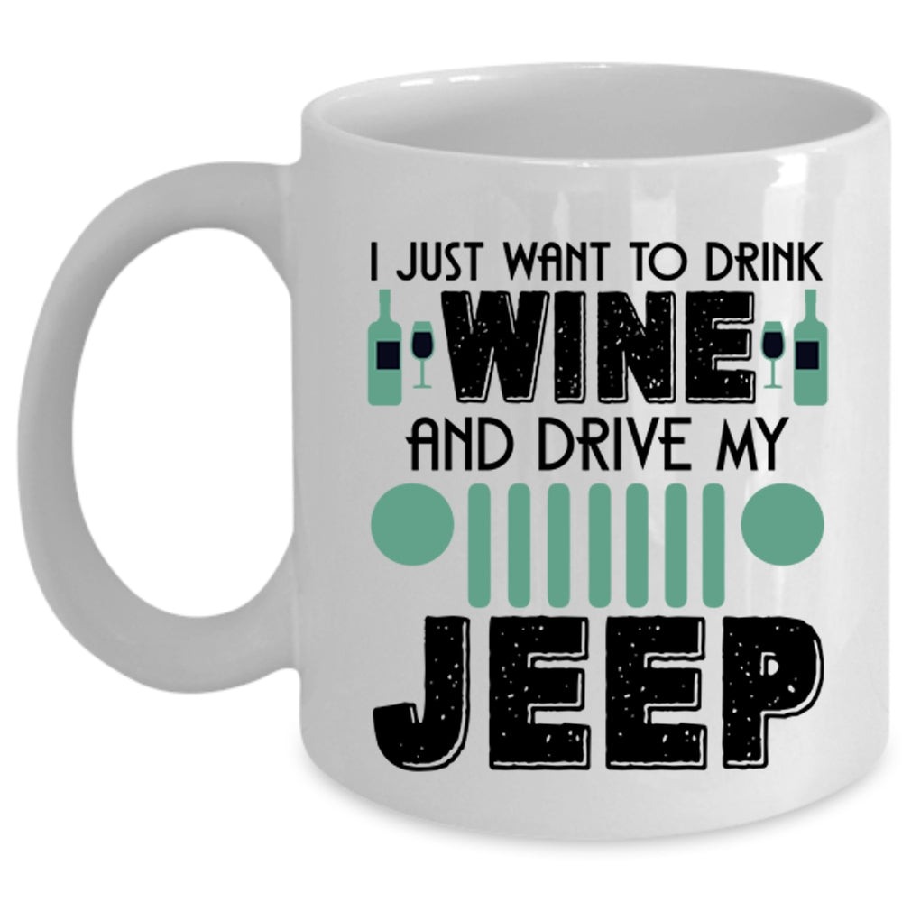 Funny Coffee Mug, I Just Want To Drink Wine And Drive My Jeep Cup