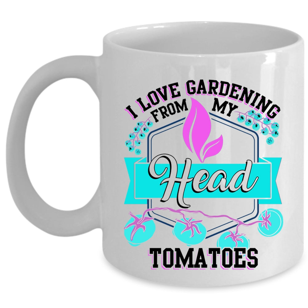 Funny Coffee Mug, I Love Gardening From My Head Tomatoes Cup