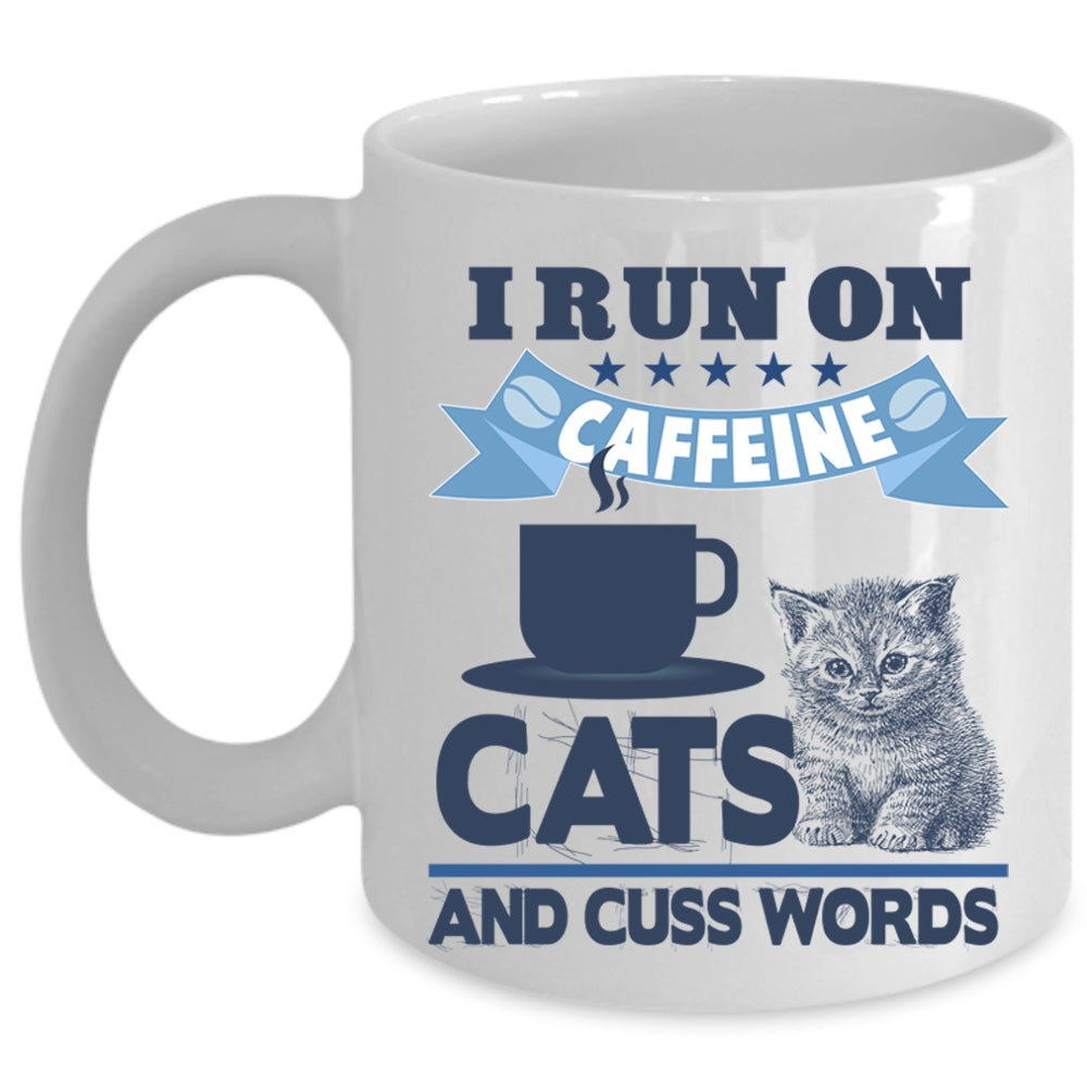 Funny Coffee Mug, I Run On Caffeine Cats Cup