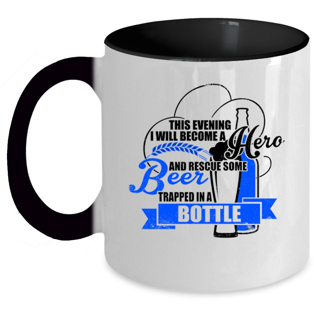 Funny Coffee Mug, I Will Rescue Some Beer Trapped In A Bottle Accent Mug