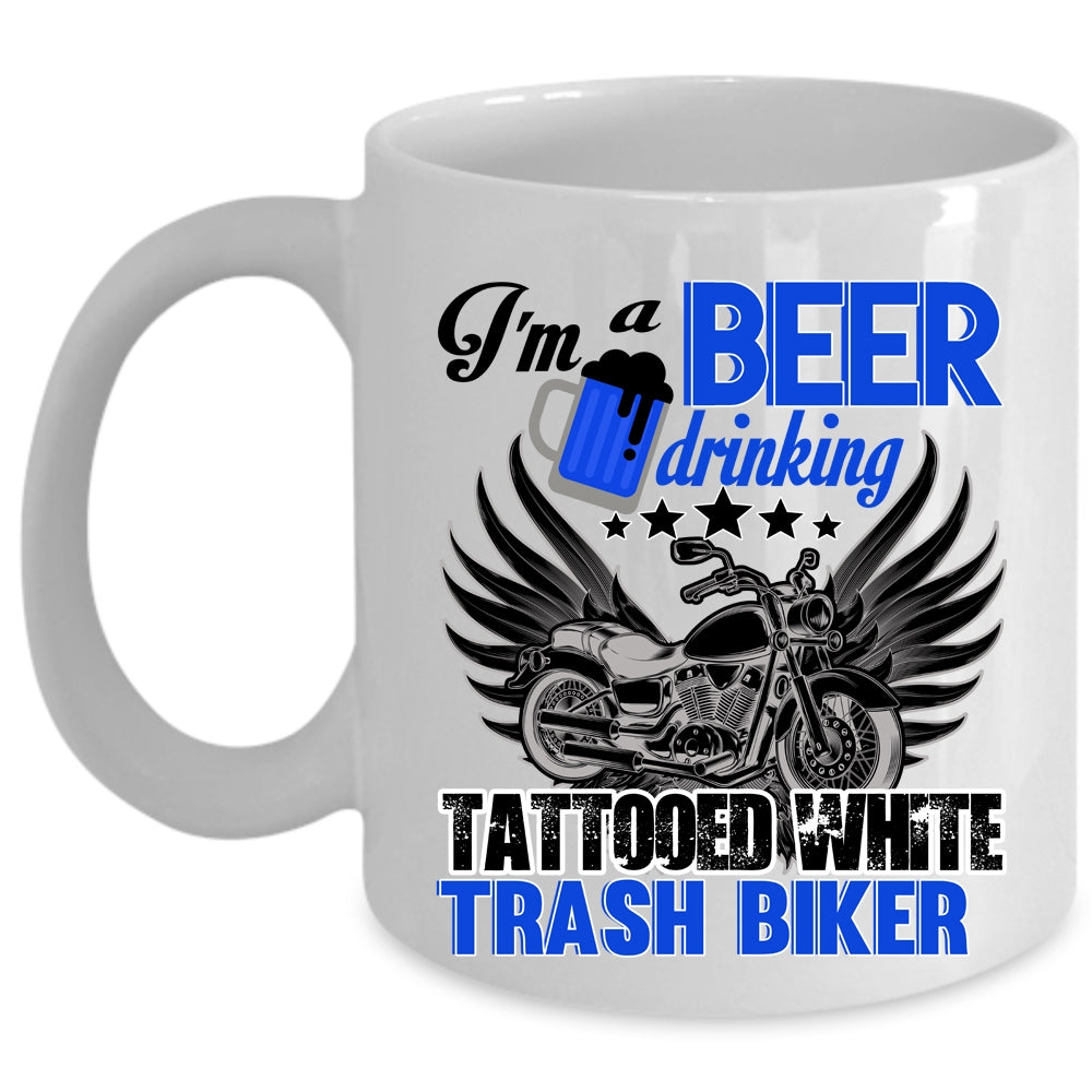 Funny Coffee Mug, I'm A Beer Drinking Tattooed White Trash Biker Cup