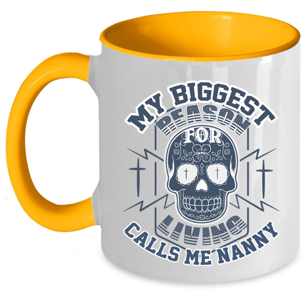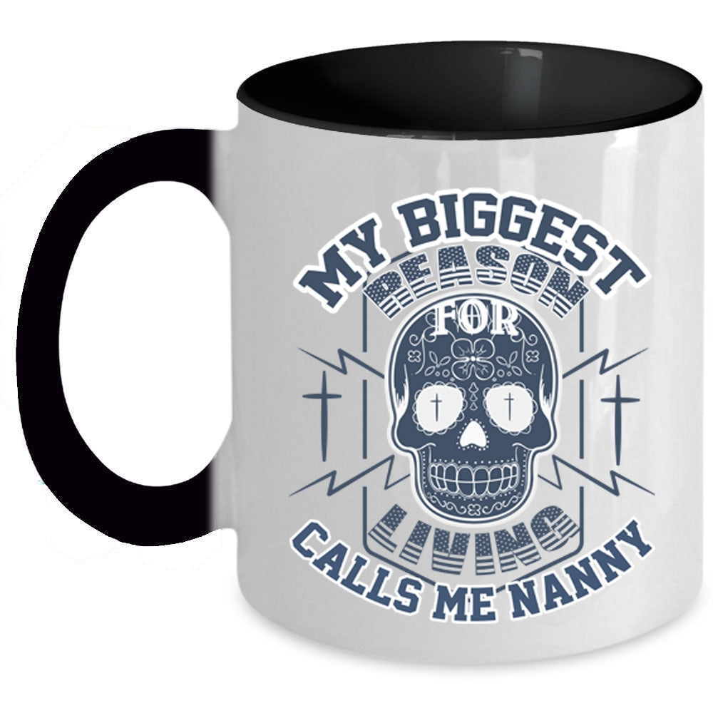 Funny Coffee Mug, My Biggest Reason For Living Calls Me Nanny Accent Mug