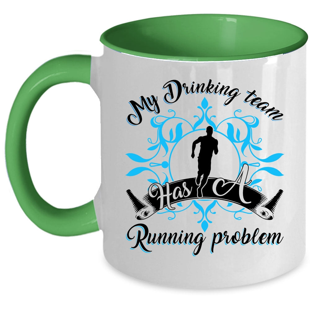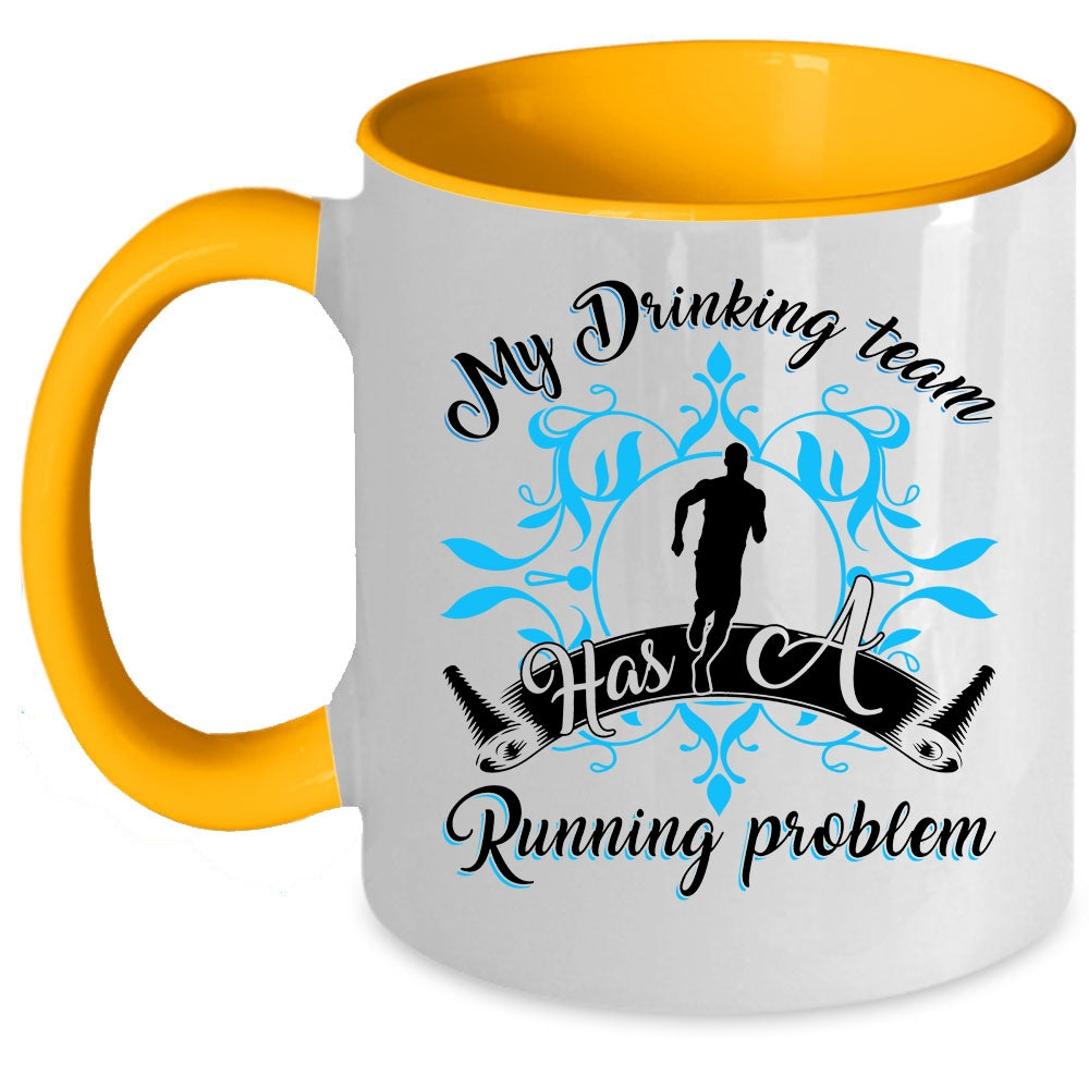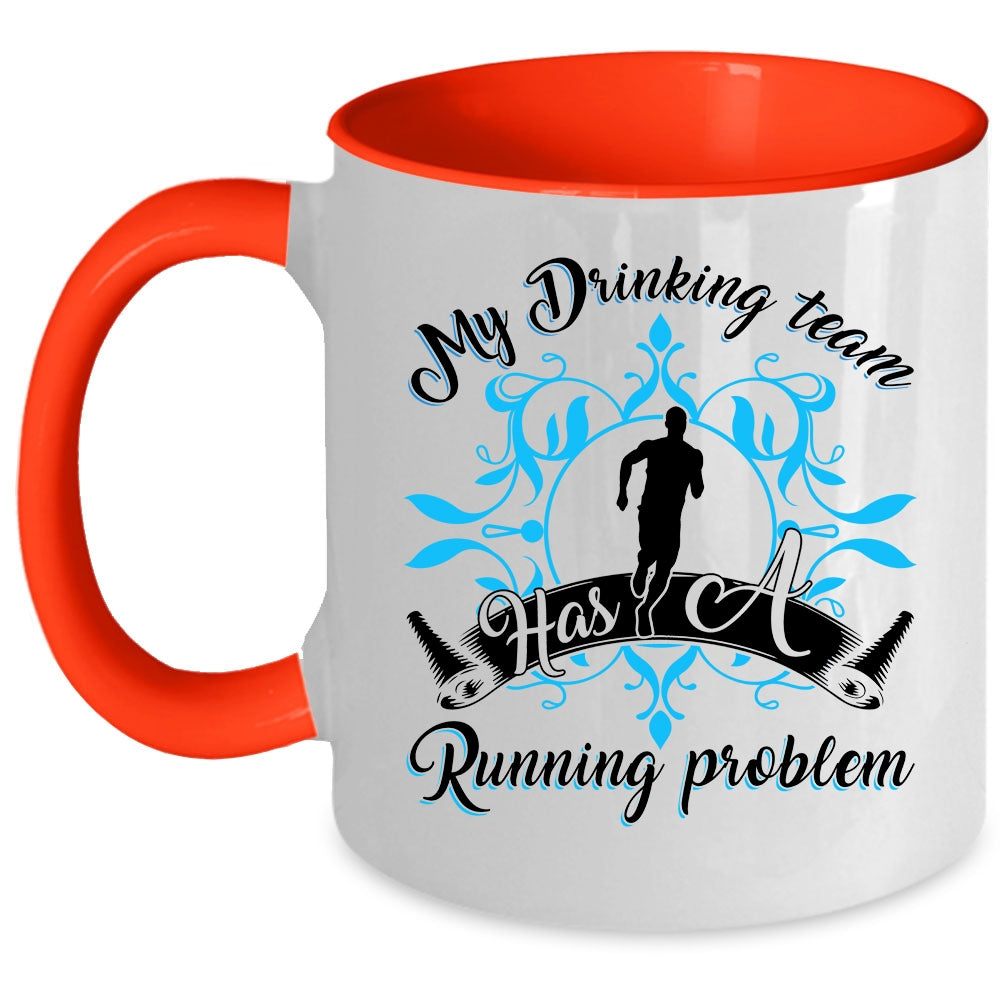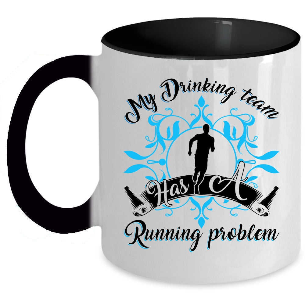 Funny Coffee Mug, My Drinking Team Has A Running Problem Accent Mug