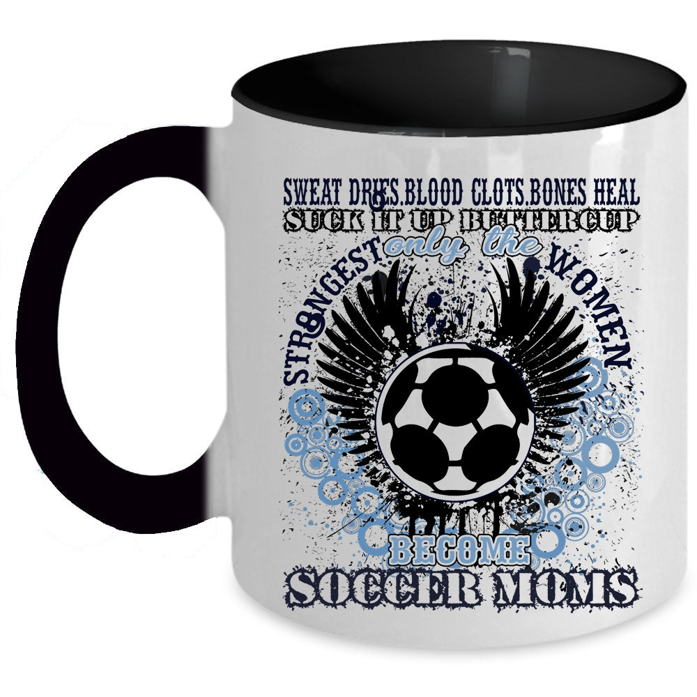 Funny Coffee Mug, Only The Strongest Women Become Soccer Moms Accent Mug