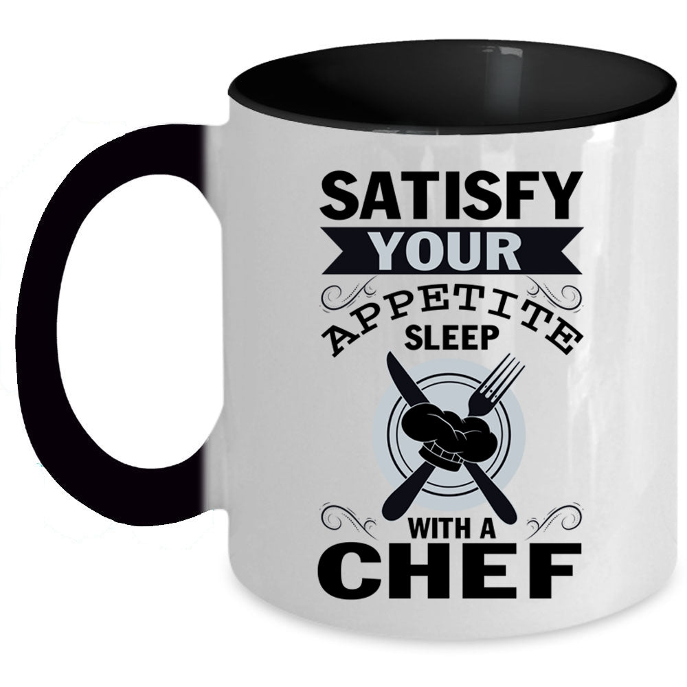 Funny Coffee Mug, Satisfy Your Appetite Sleep With A Chef Accent Mug