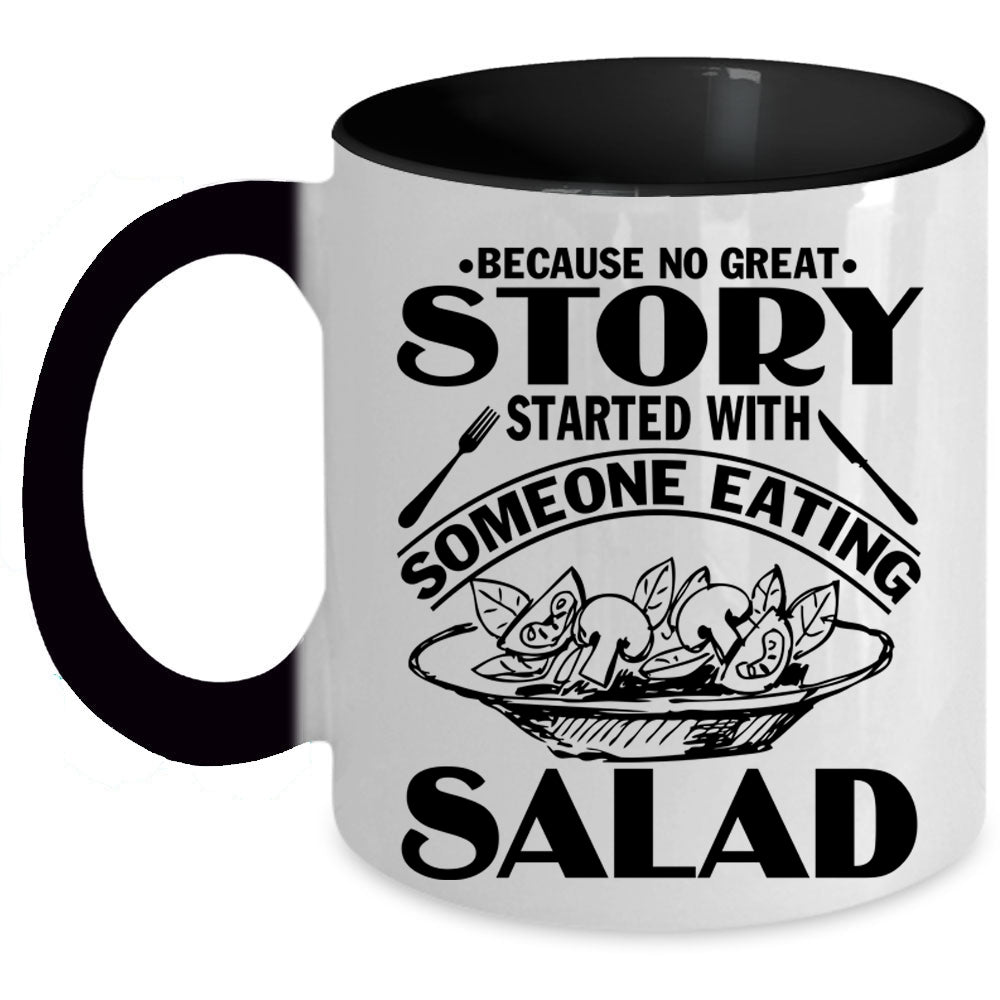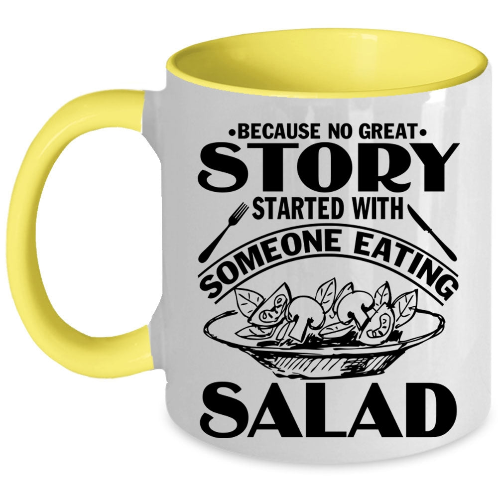Funny Coffee Mug, Story Started With Someone Eating Salad Accent Mug