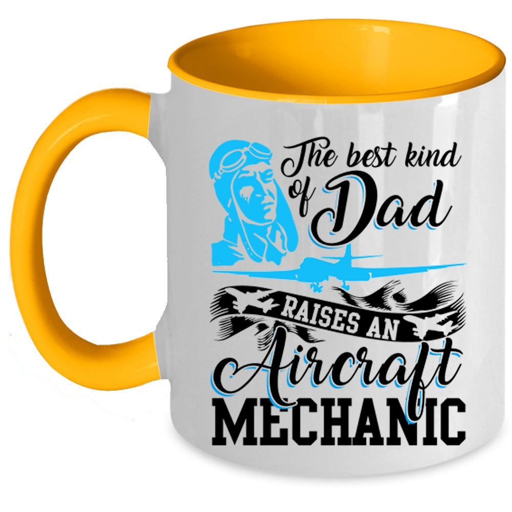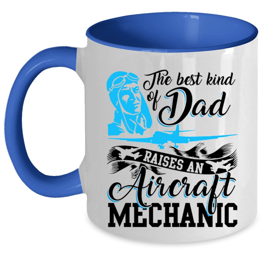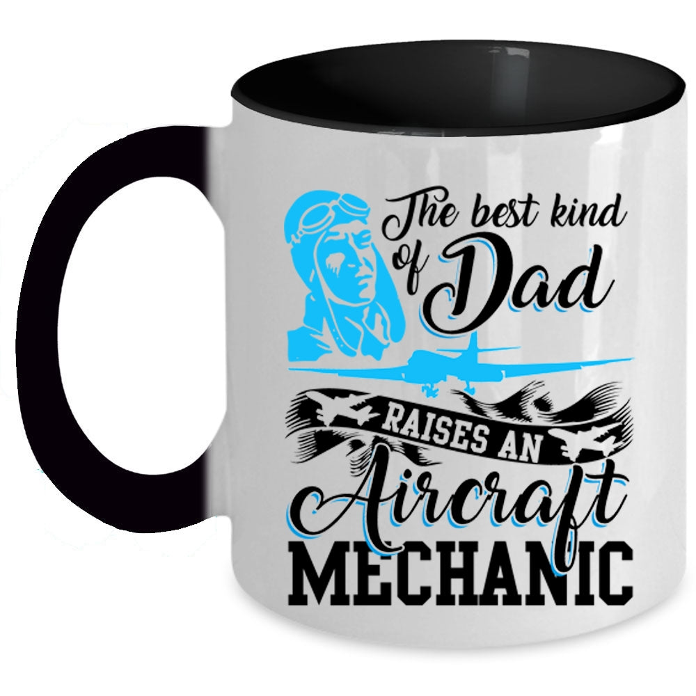Funny Coffee Mug, The Best Kind Of Dad Raises An Aircraft Mechanic Accent Mug