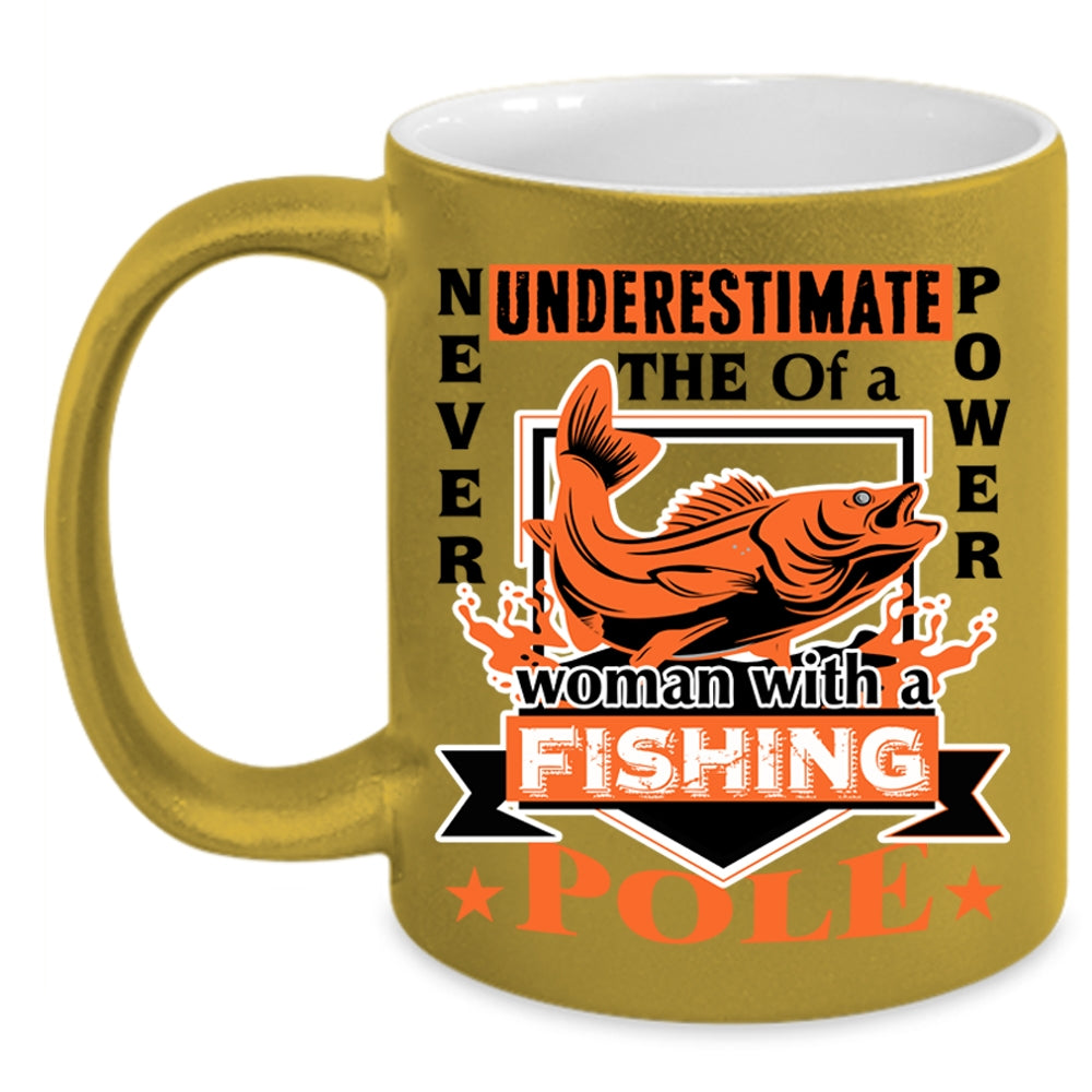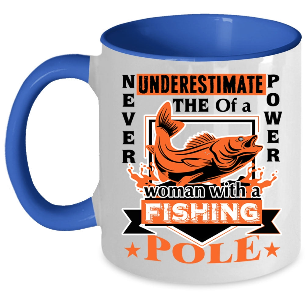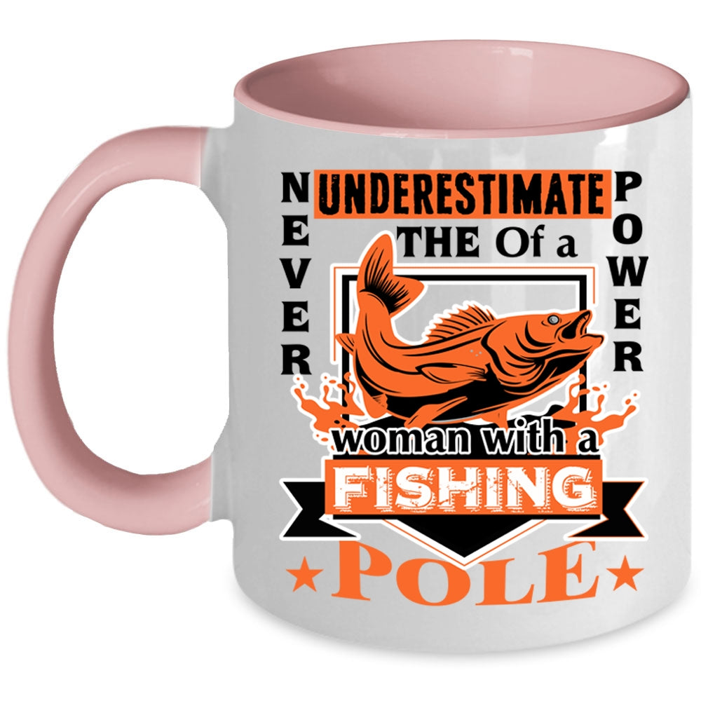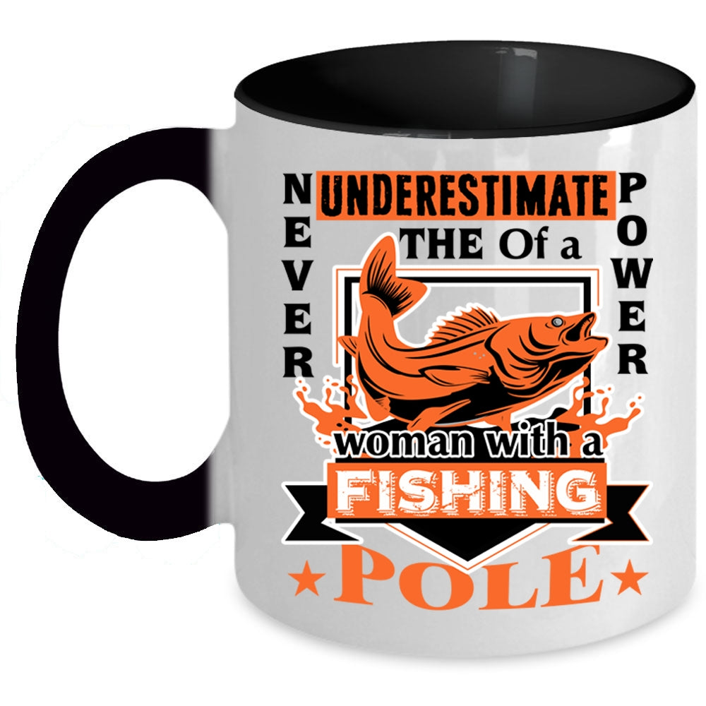 Funny Coffee Mug, The Power Of A Woman With A Fishing Pole Accent Mug