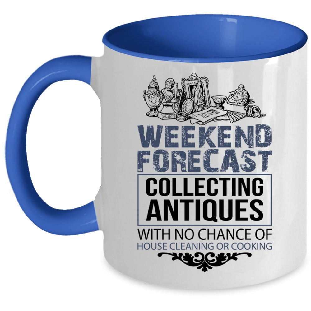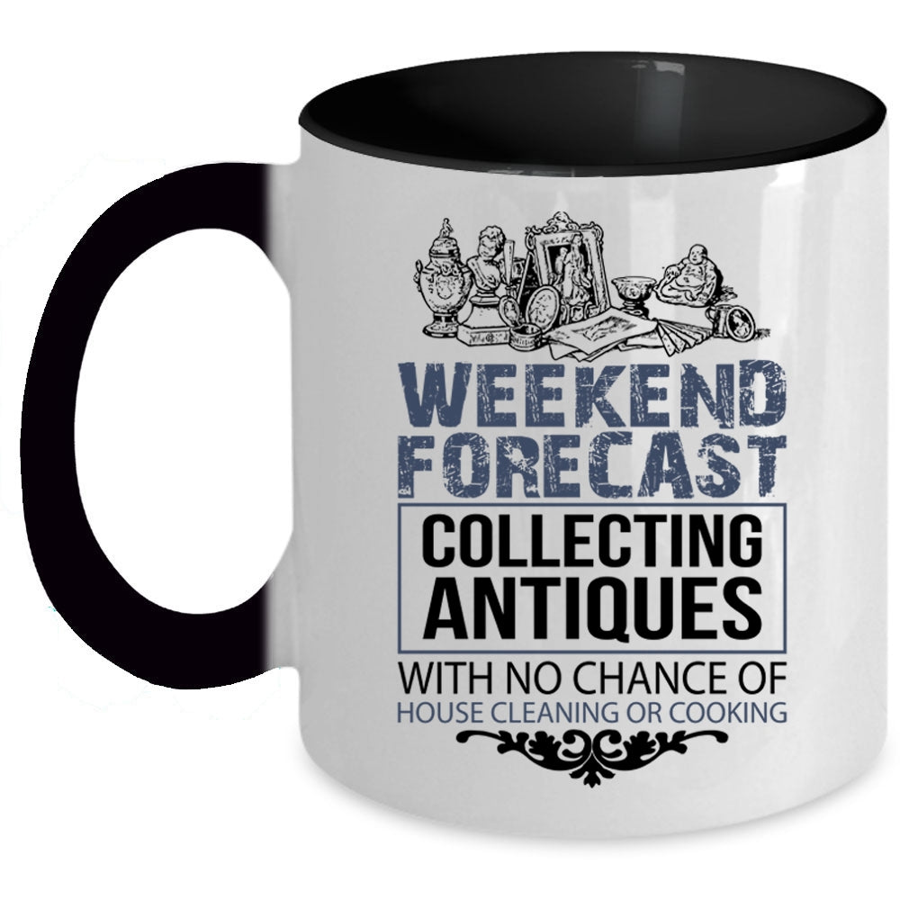 Funny Collecting Coffee Mug, Weekend Forecast Collecting Antiques Accent Mug