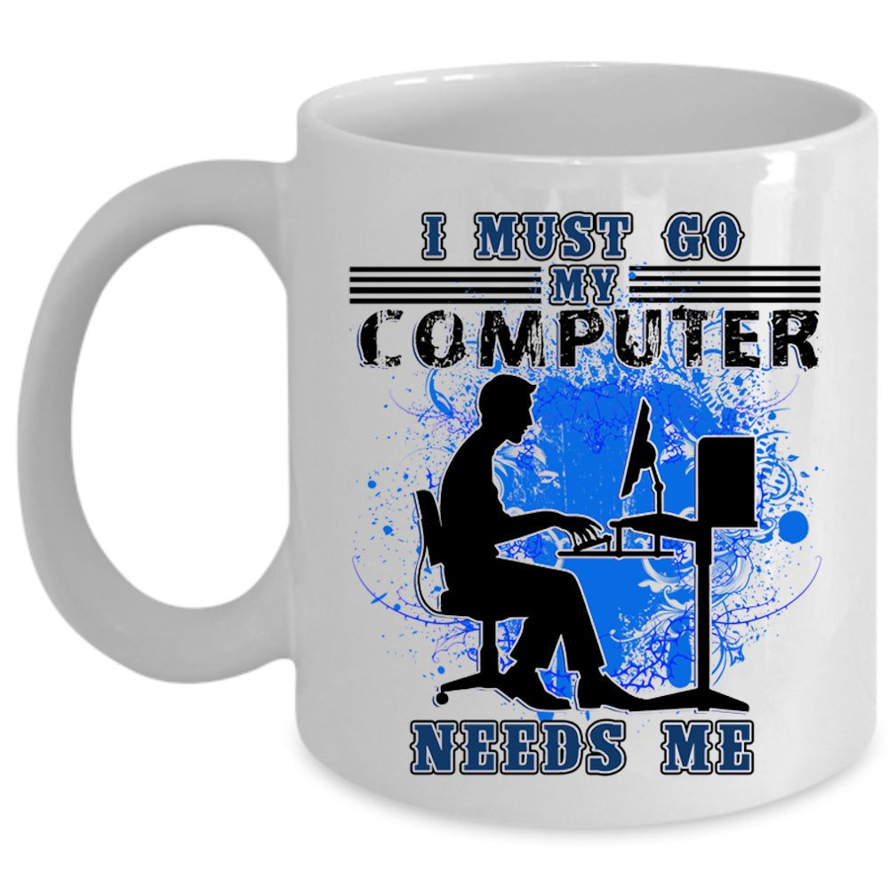 Funny Computer Coffee Mug, I Must Go My Computer Needs Me Cup